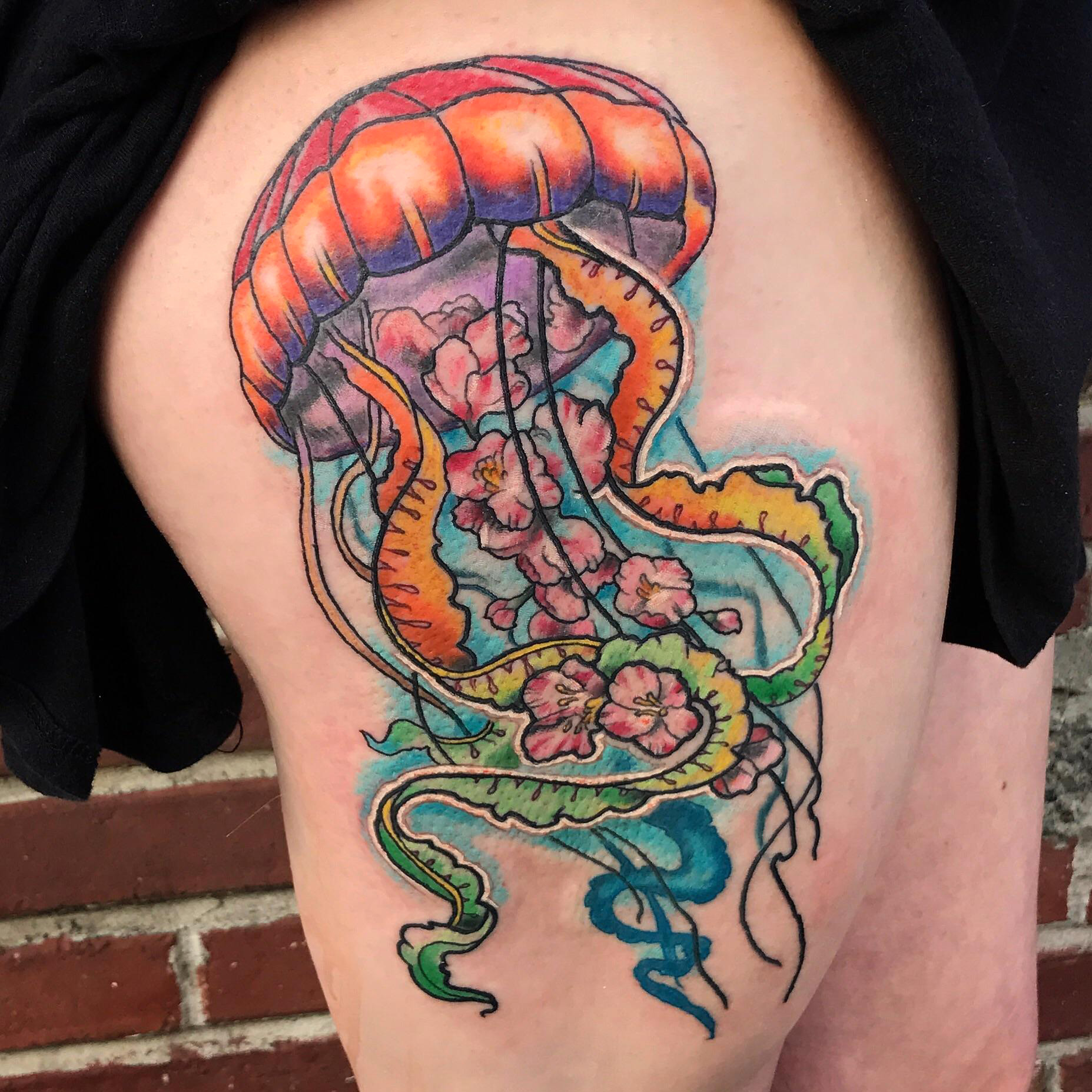 Colorful jellyfish by Matt at Supergenius in Seattle #evamigtattoos #tattoo