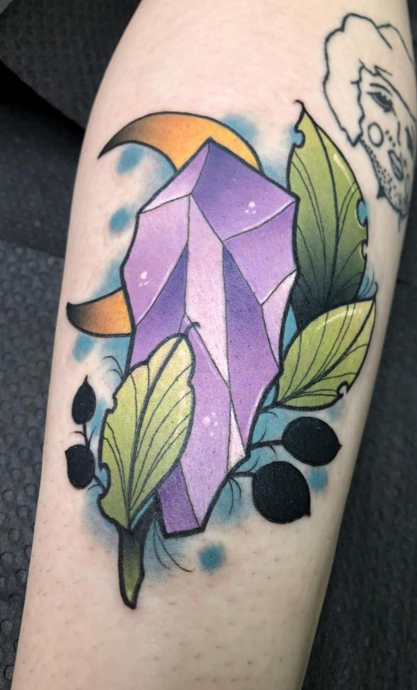 Crystal and crescent moon by Taylor Mills at Provenia Tattoo in Sinking Spring, PA #evamigtattoos