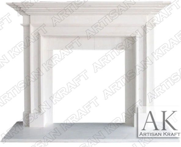 Traditional 2 white marble mantel surround is simply perfect. A contemporary design that has a traditional feel. Even straight lines and steps symmetrically framing the firebox. This style is ageless it fits in a traditional and modern home. This classic design is always a great choice. This mantel looks great in honed black also. The honed finished is different that the polished finish. Honed gives it a flat or matte look making the fireplace even more modern.
