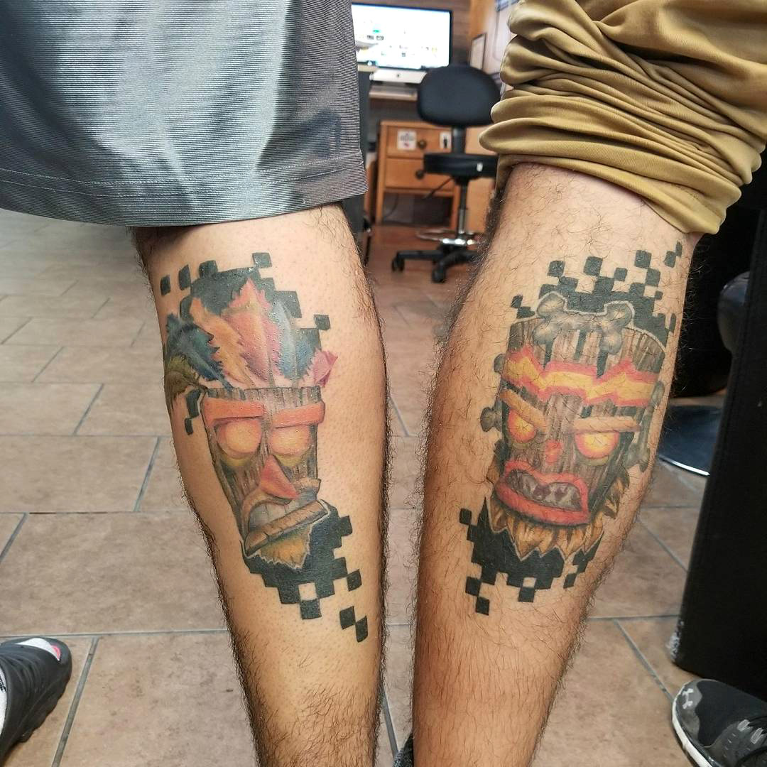 Aku Aku and Uka Uka Tattoo done by Andrew at PleasureandPain in Toronto, Canada