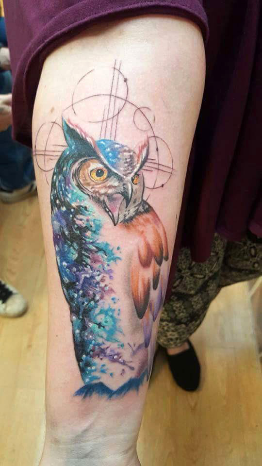 Cosmic Owl by Myke at Wild Bills Tattoo in Roseville, CA