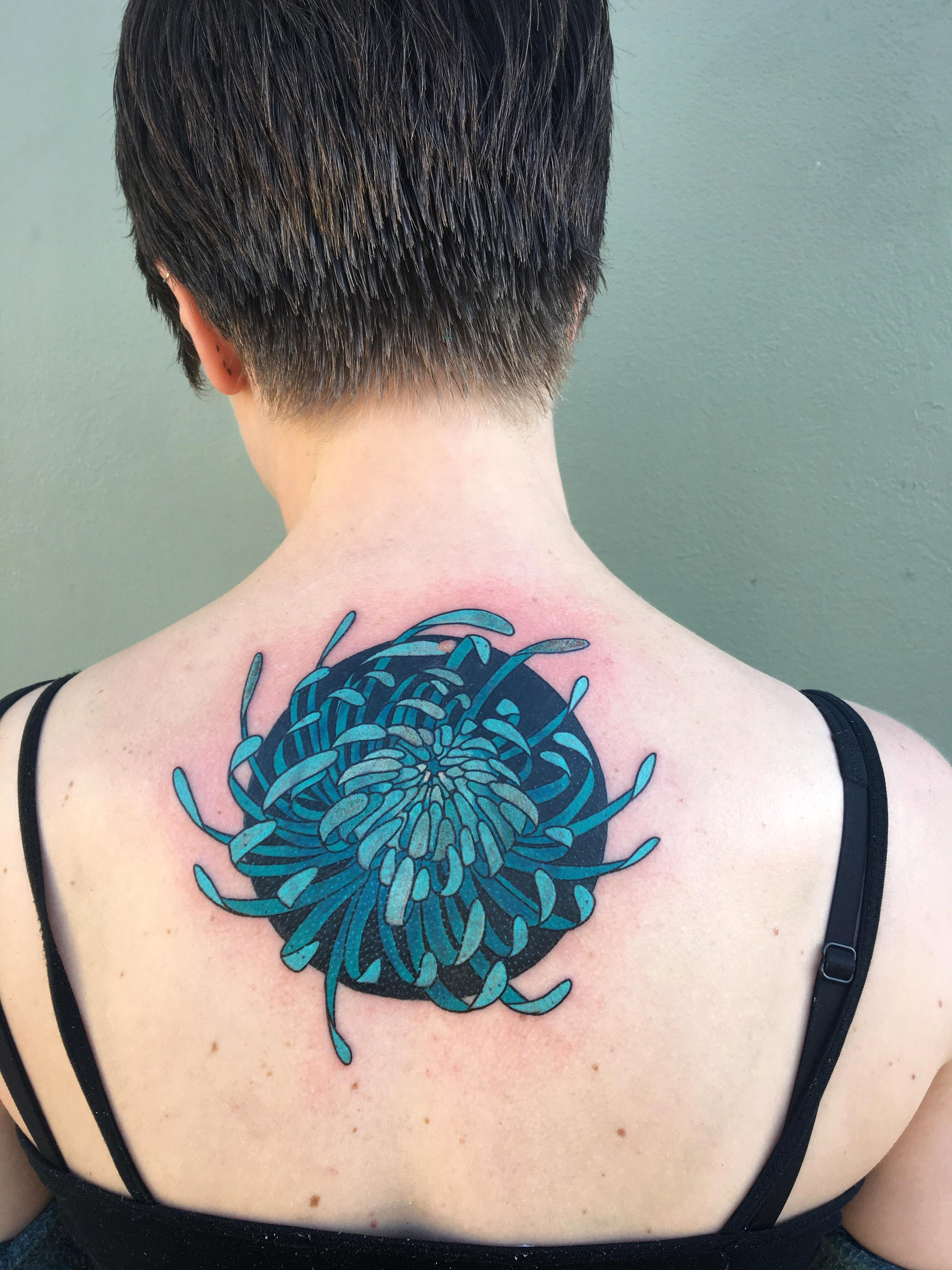 Chrysanthemum tattoo done by Wendi Kai at Tattoos by Wendi Kai in Springfield, Oregon