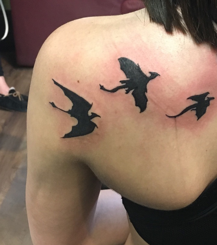 Dragon Silhouettes, tattoo done by Austin Pratt at Revolver Tattoo in New Brunswick, NJ