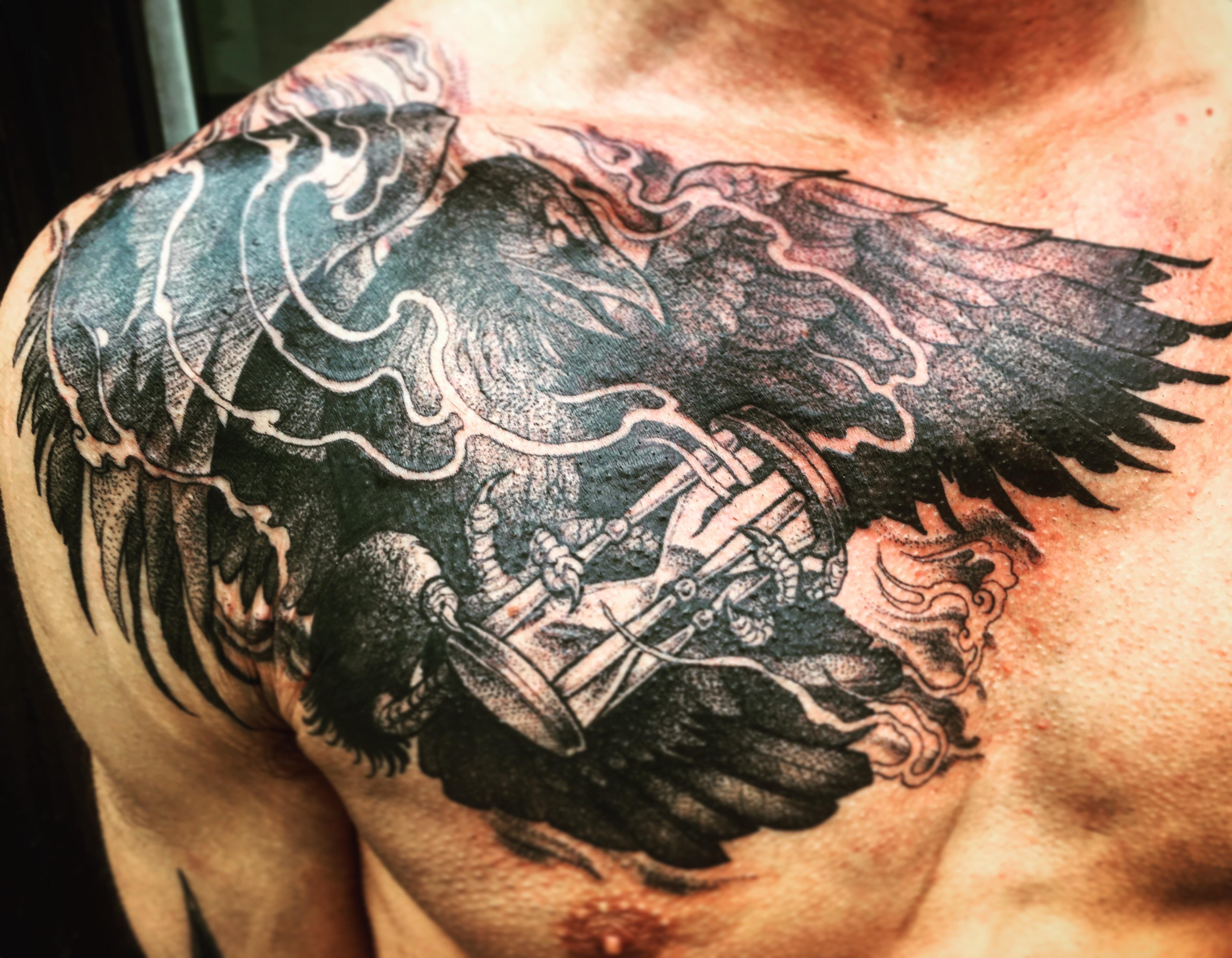 Raven tattoo by Joby Dorr at Artcore Studios in Seattle, WA
