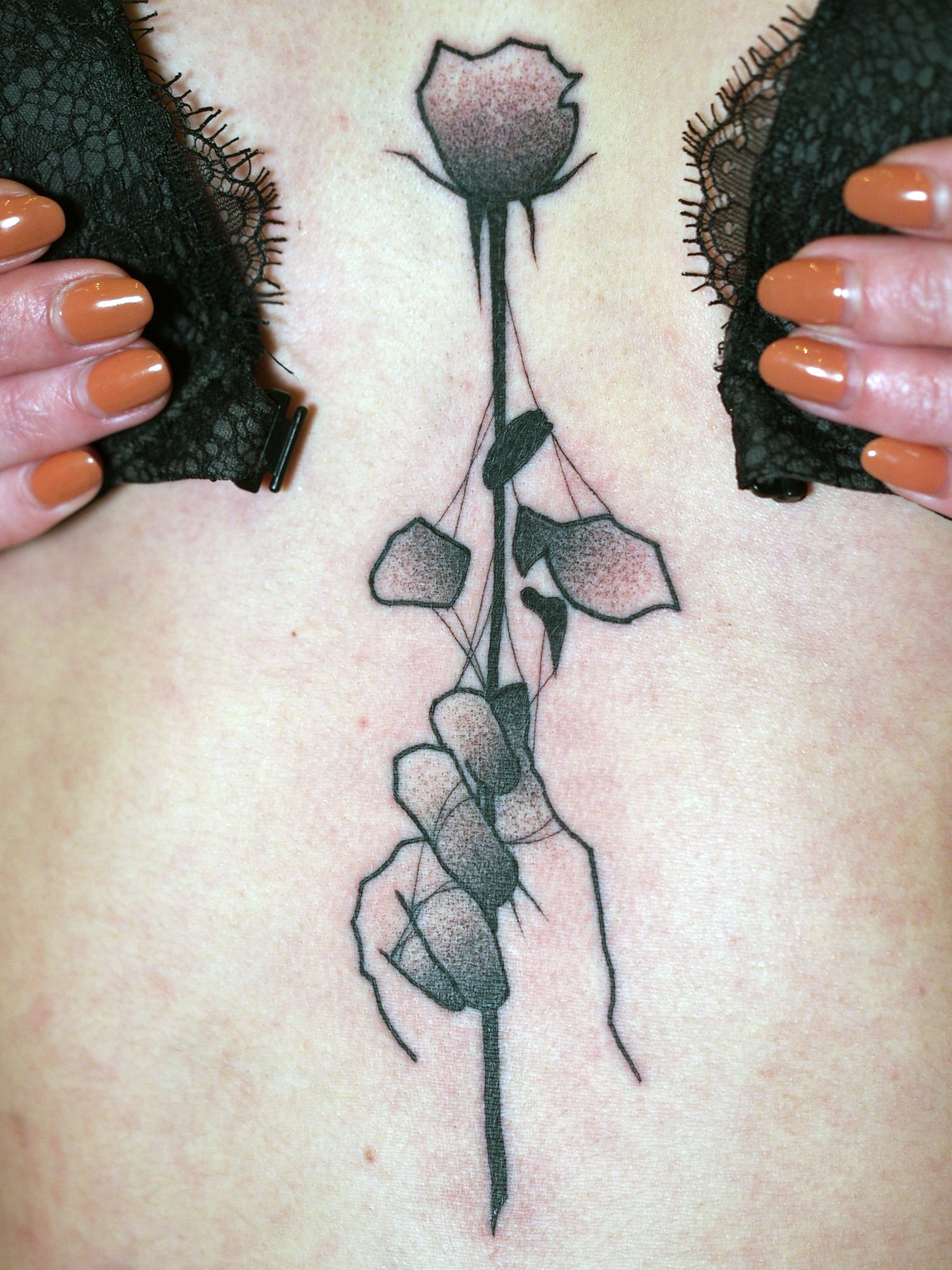 Rose and hand piece by @sewp at Black Widow Tattoo in Toronto
