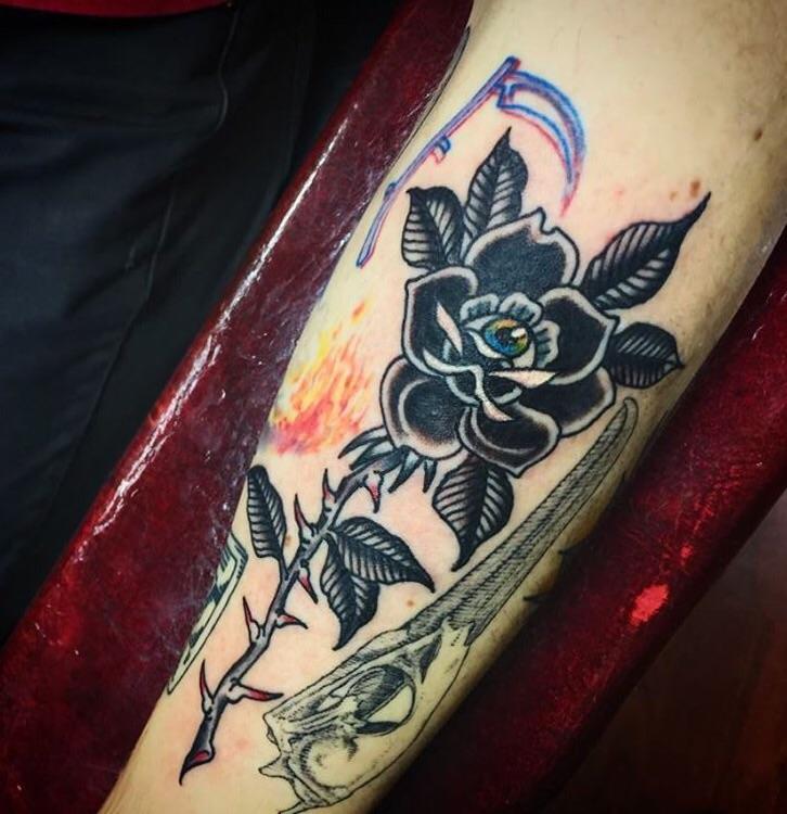 Black rose, tattoo by Keeli at Gold Coast in Monterey, California
