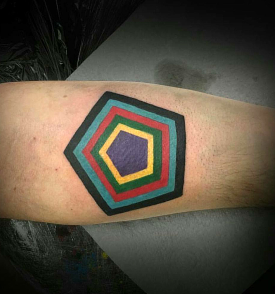Colour pentagon, tattoo by Matt Fowler @ the Blackline, London