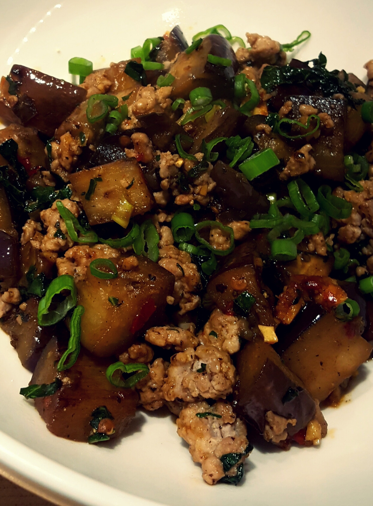 Eggplant and Pork stir fried with doubanjiang and chile oil