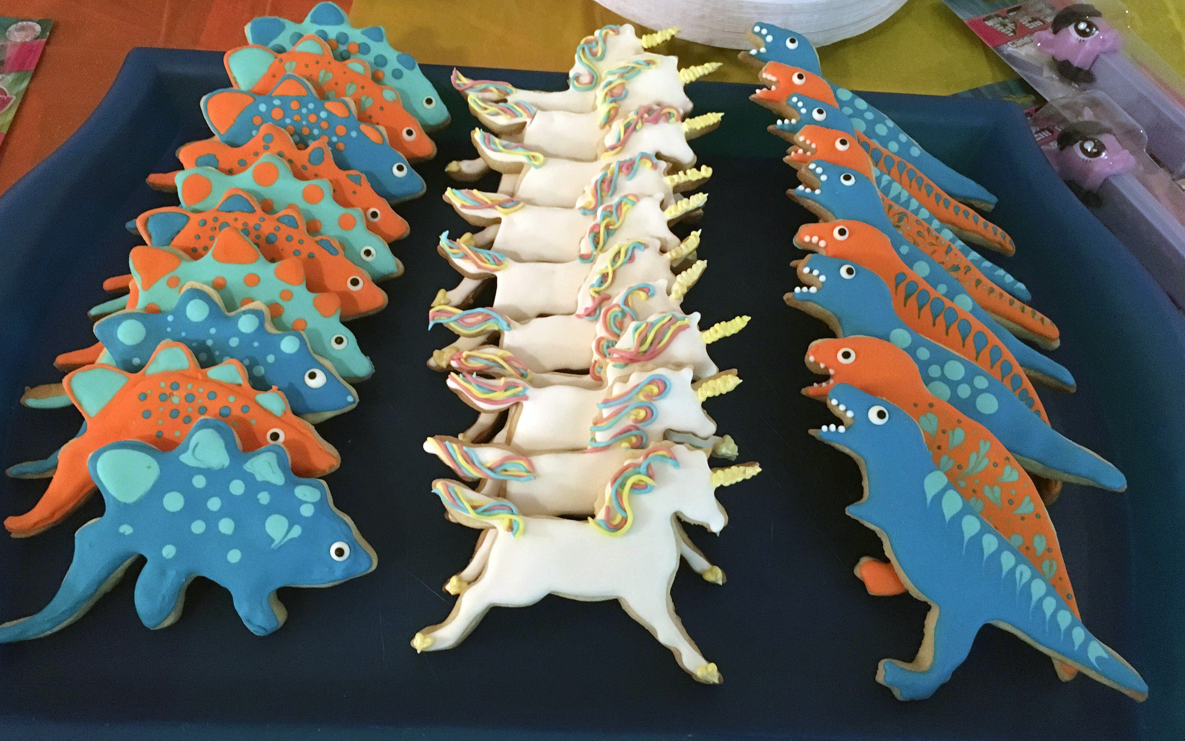 Unicorn and Dinosaur cookies