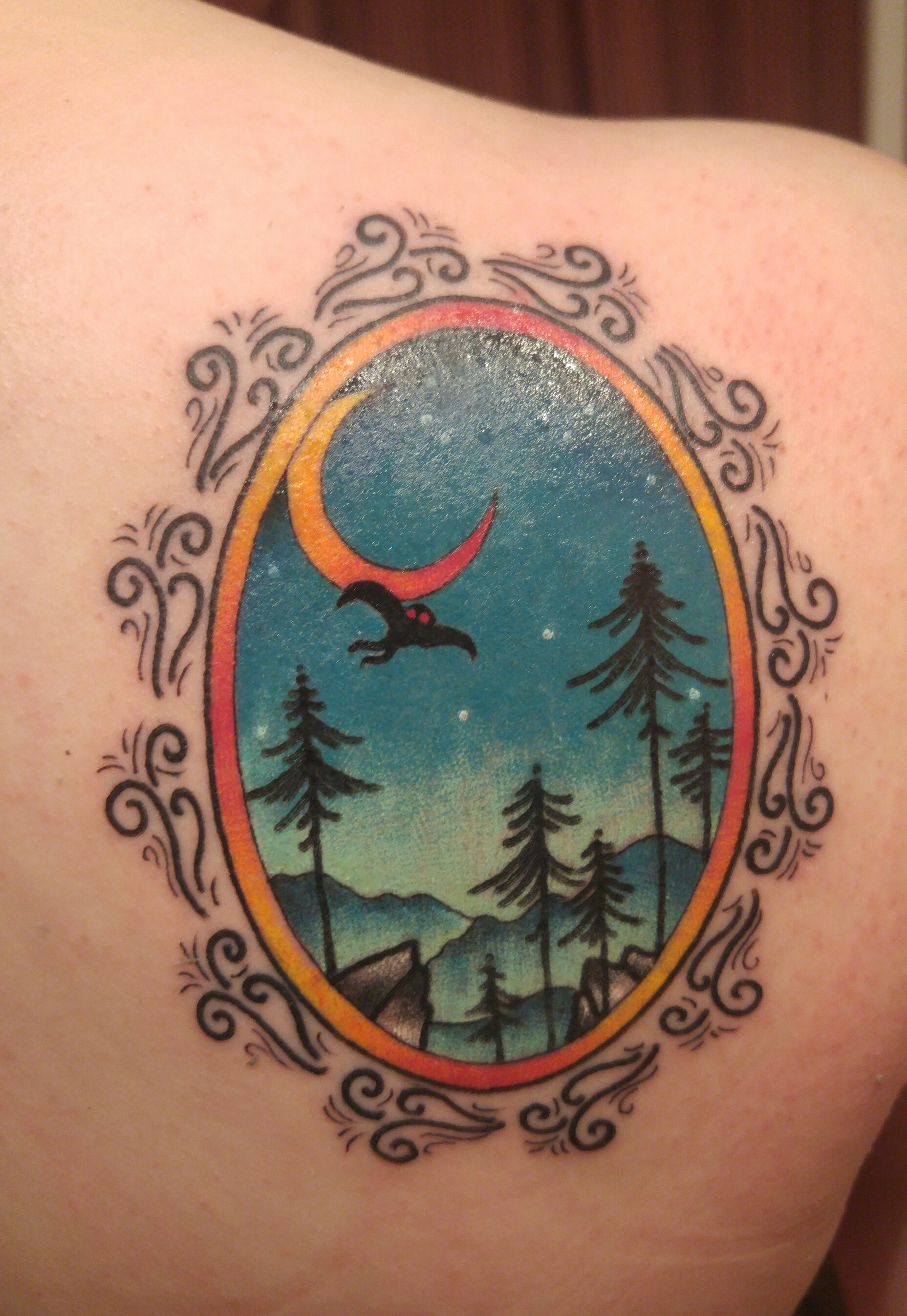Mothman tattoo. By Kevin Ray at Art Alive Studio, NC
