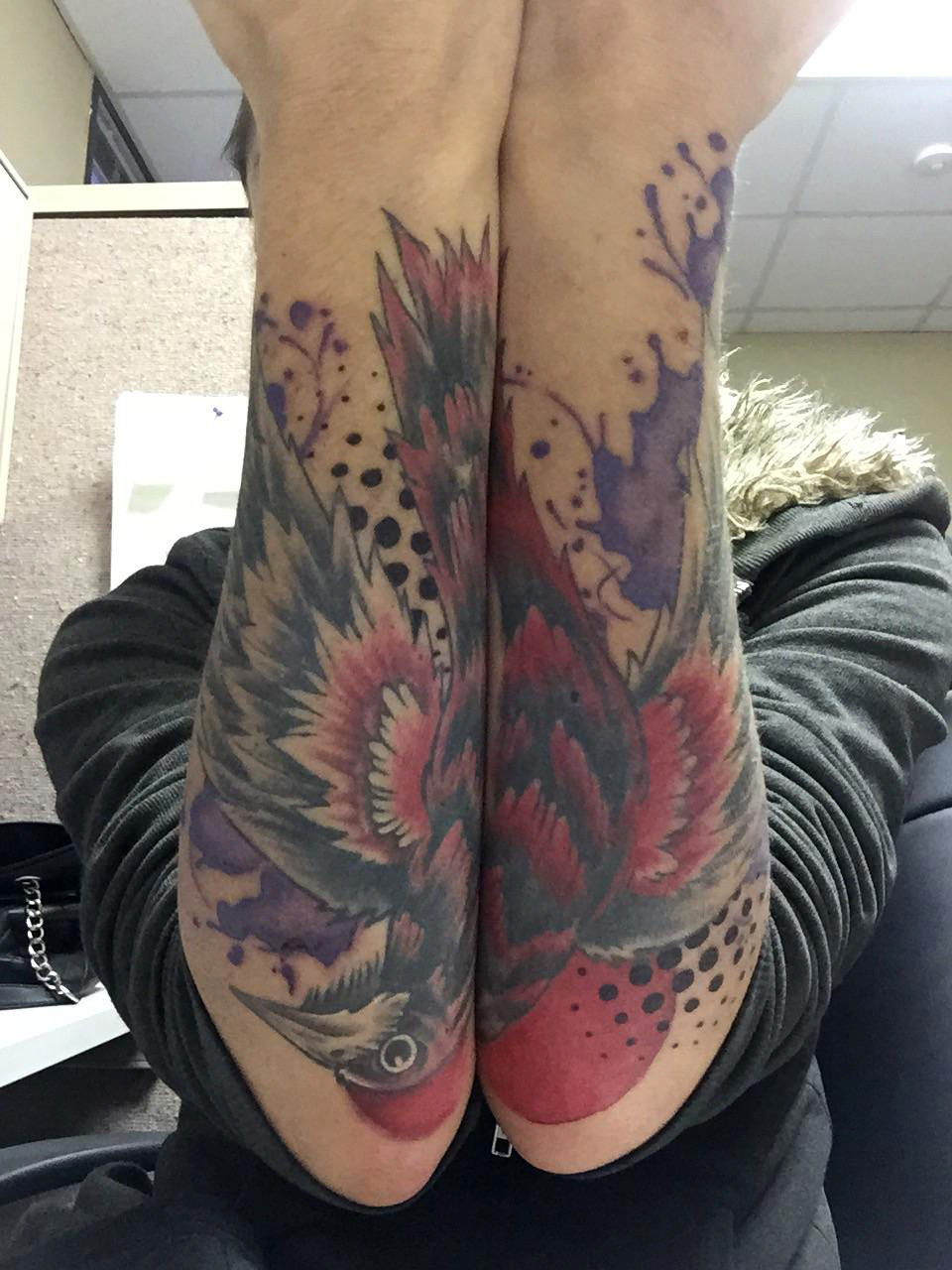 Raven tattoo Done by Caleb Cannon at Ink Pit in Ft. Worth, Tx partially healed fresh