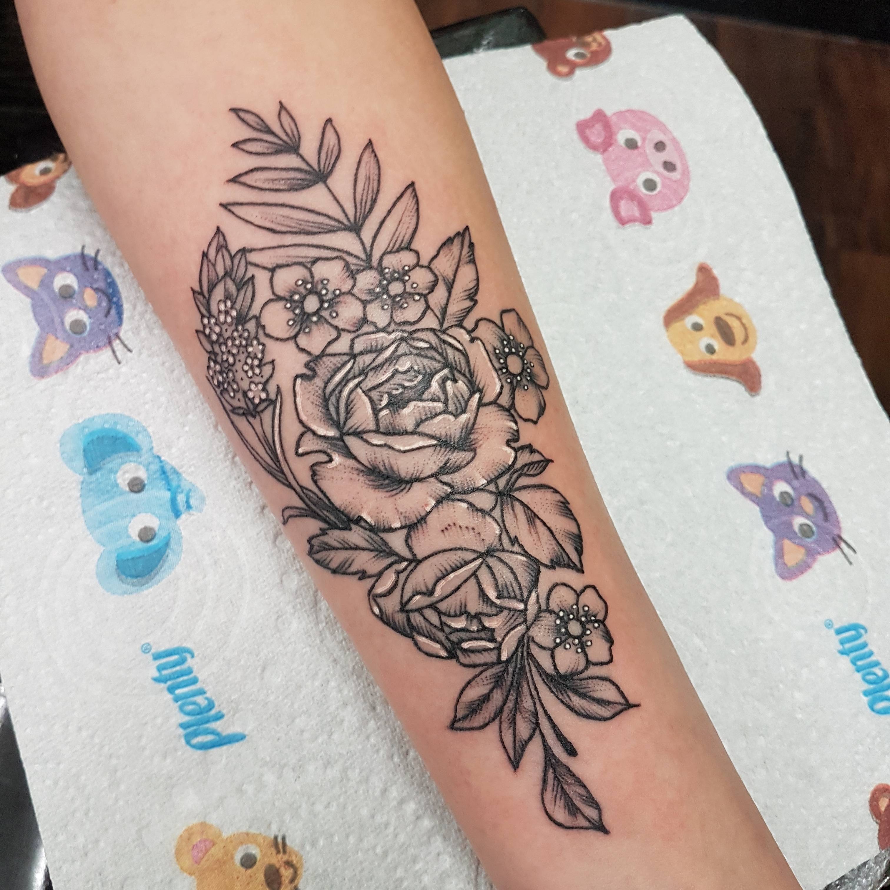Flowers tattoo by Isla McDonald at Sanctuary Tattoo, Dundee