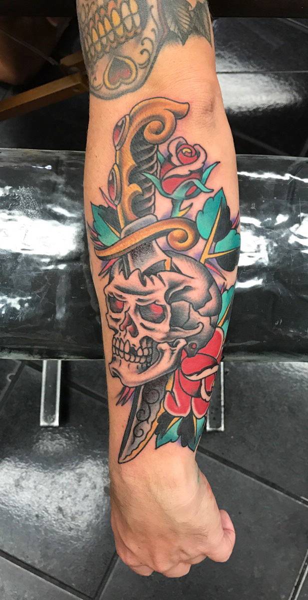 Traditional Skull & Dagger by Jordan Moore @inksmith & rogers, Jacksonville Fl