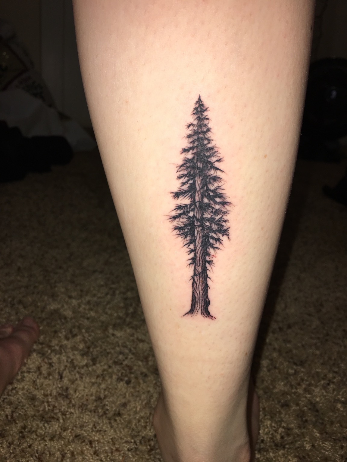 Fresh redwood tattoo by Nick at True Nature Tattoo Arcata, CA