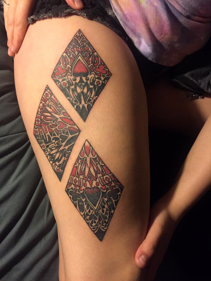 Custom Harley Quinn Diamonds by Justin McCarty of Third Eye Tattoo in Urbana, IL