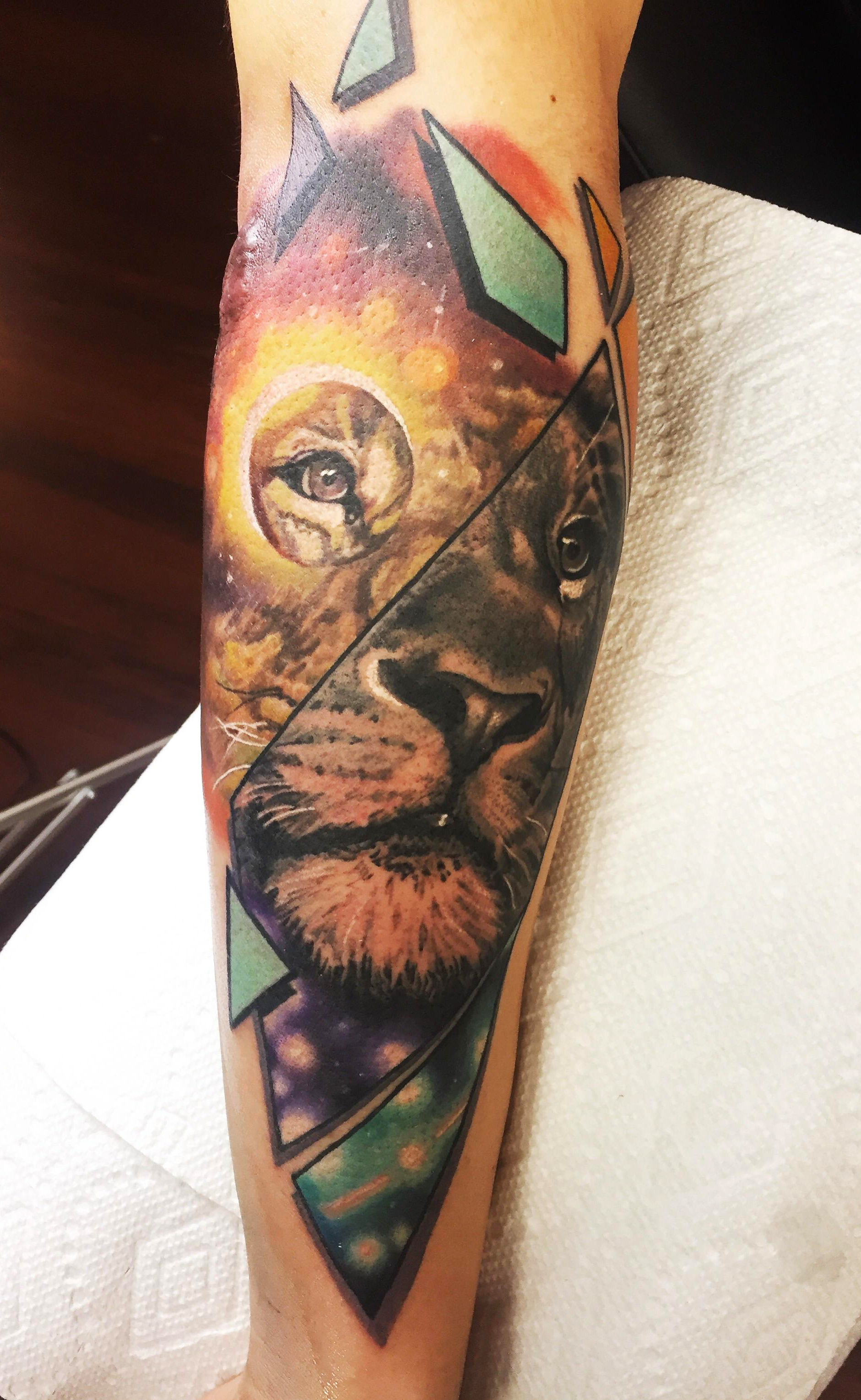 Space lion done by Bobby Cupparo @inkology tattoo art gallery in NYC
