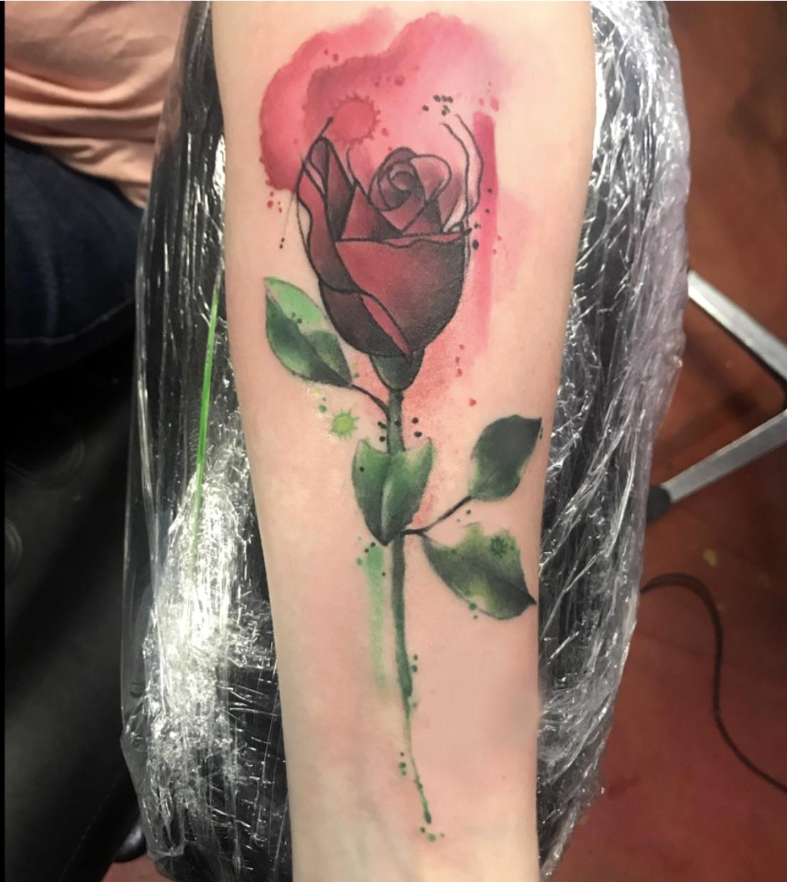 Watercolor rose tattoo by Keith fieler at artistic skin design in Indianapolis Indiana