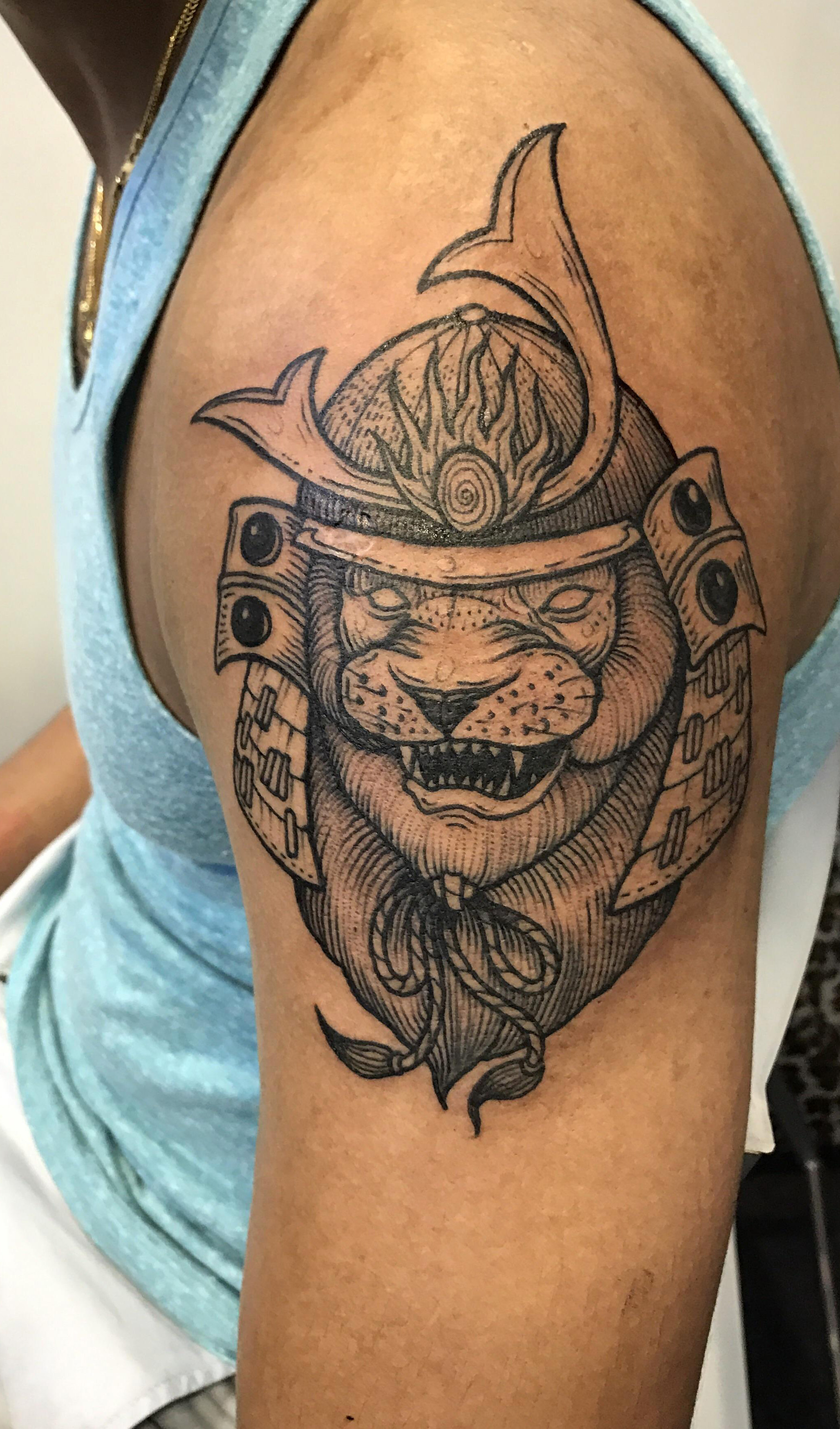 Samurai Lion by the amazing Nhatbe, Alchemist Tattoo at the Singapore Ink Show