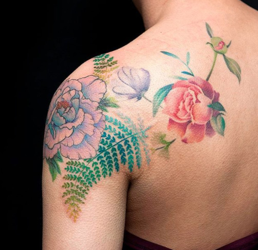Flowers tattoo by Cheo Park at East Side Ink in NYC