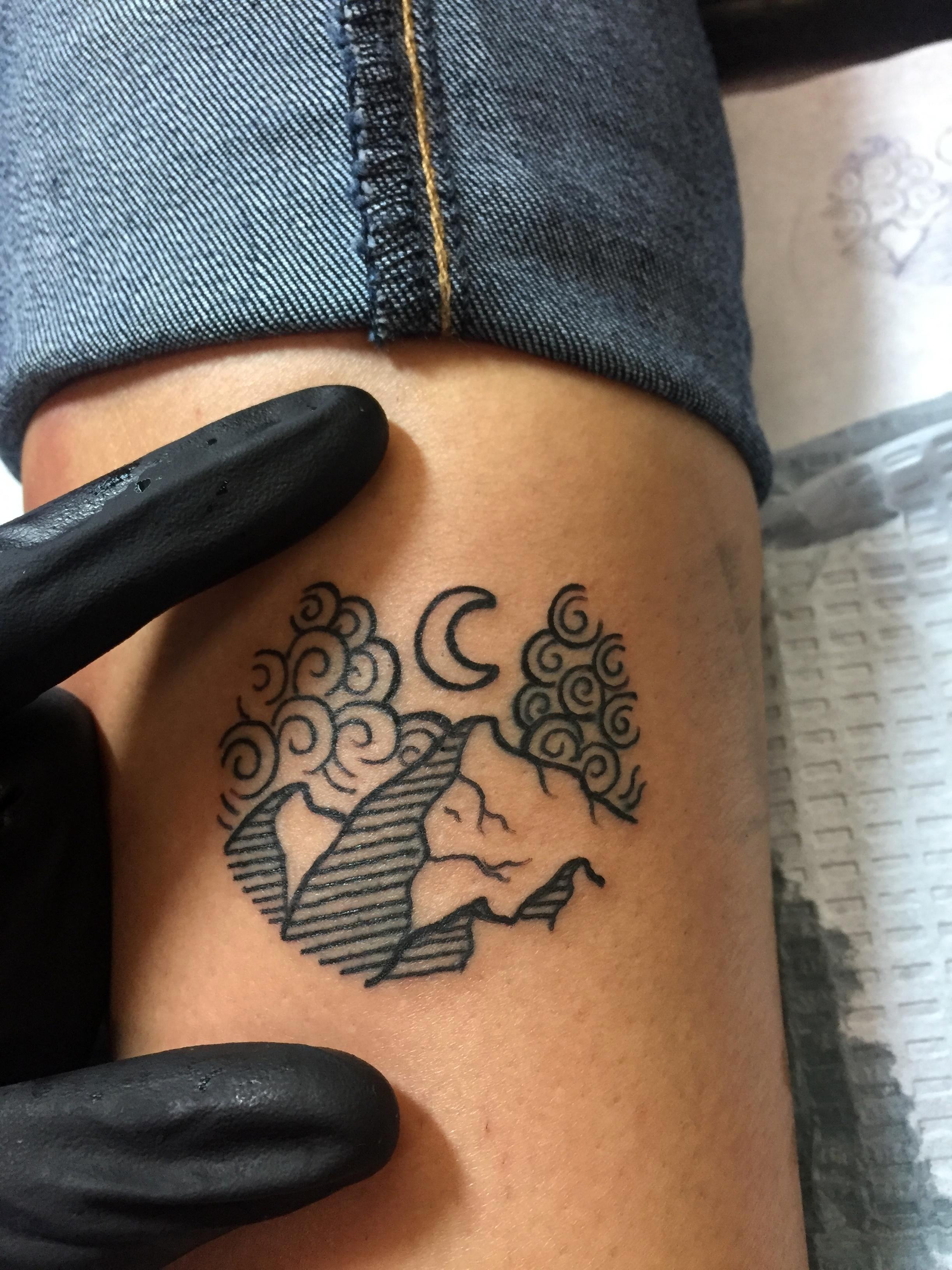 the mountains tattoo done by Haze @ Bold Stroke Tattoos in Dallas, TX
