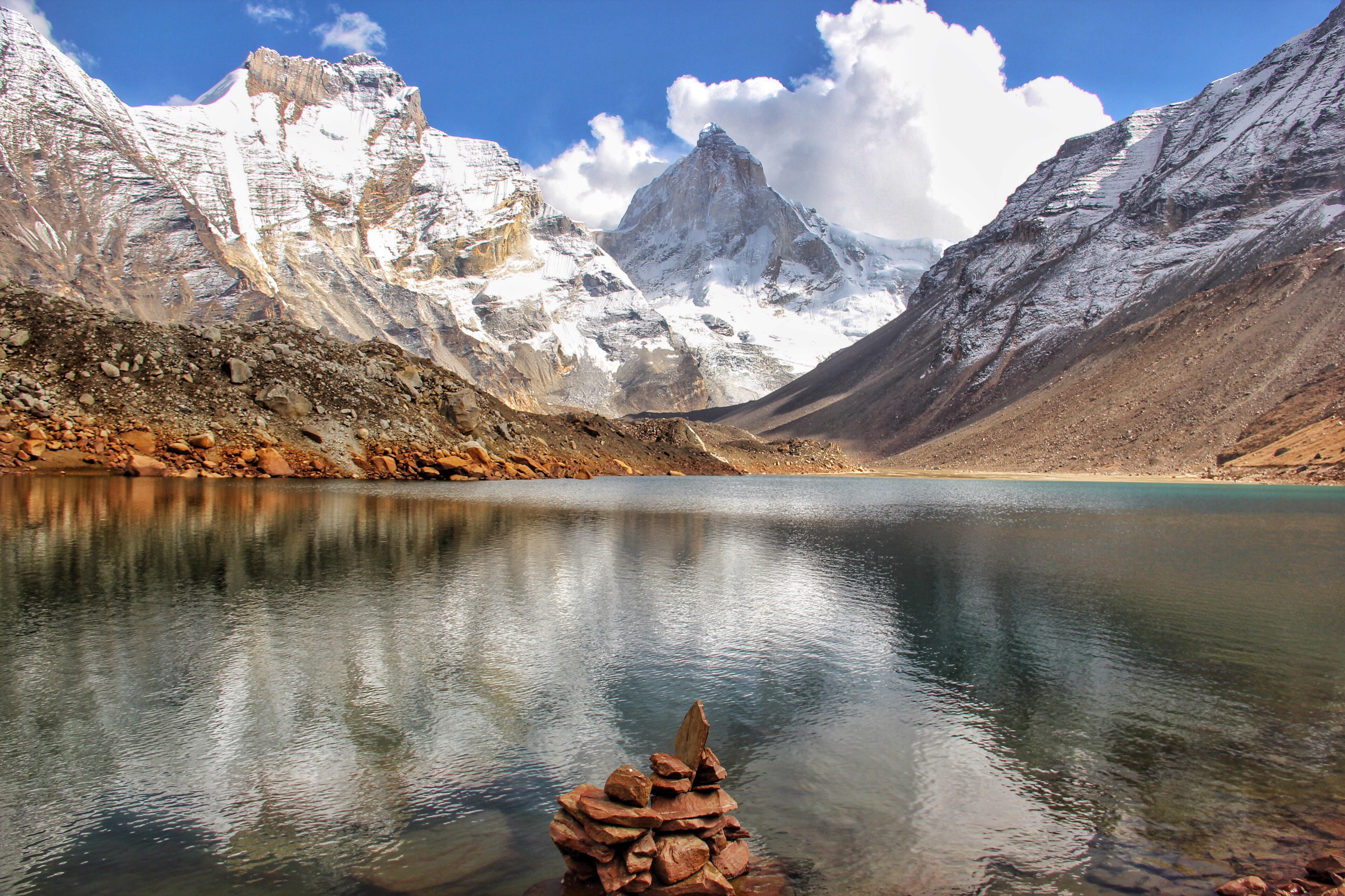 Kedar Tal lake in Uttarakhand at the Base of Mt. Thalaysagar