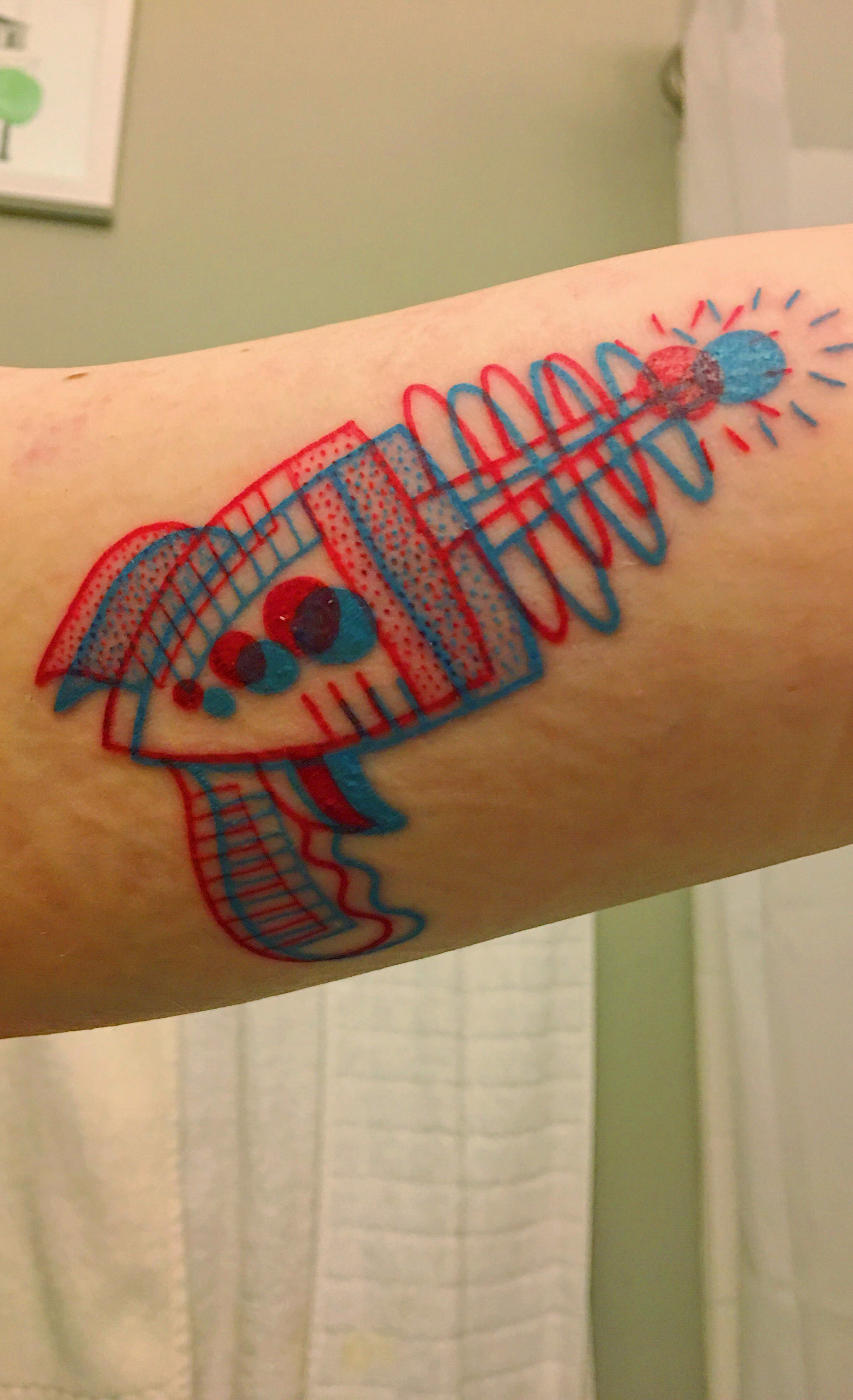 Raygun tattoo by Winston the Whale in Portland, Oregon