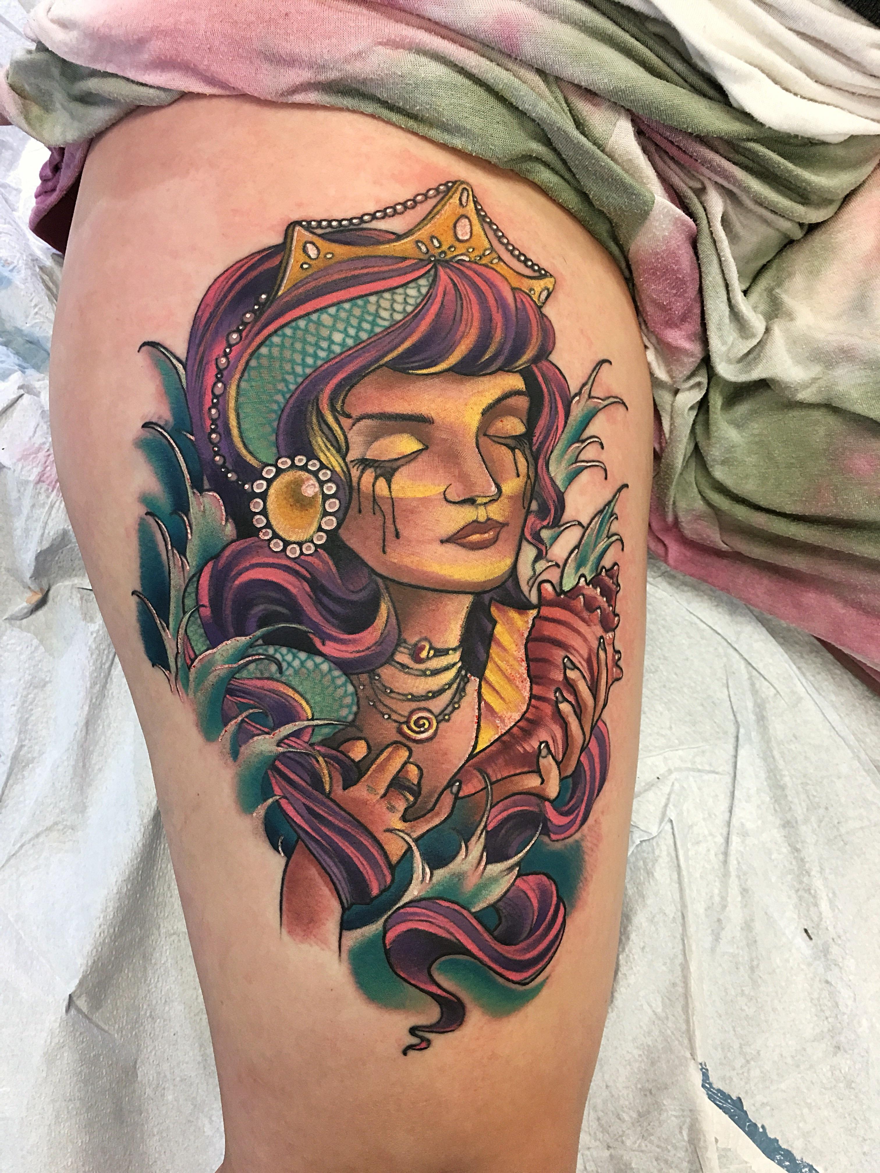Sea Queen tattoo by Paul Berkey, Dela Ink, Denver Colorado