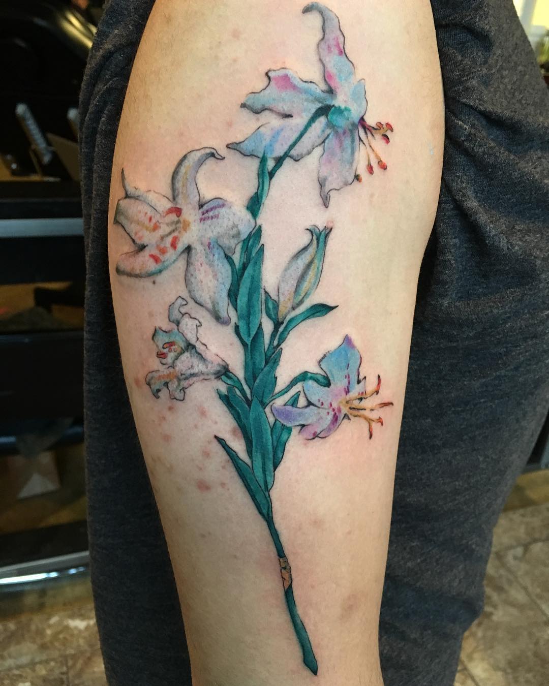 Singer Sargents Lilies tattoo by Mat Franklin at Defining Skin Columbus, OH