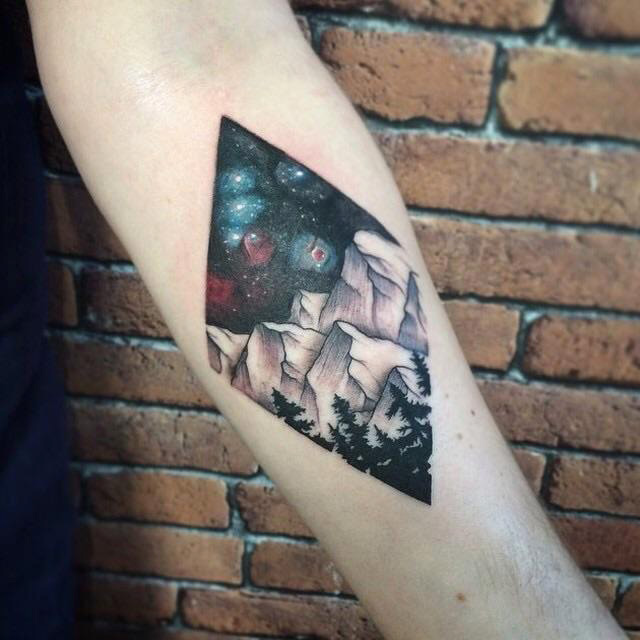 Orion's Belt over the mountains tattoo by Alex Hearn at Thirteen tattoo in Waltham Abby UK