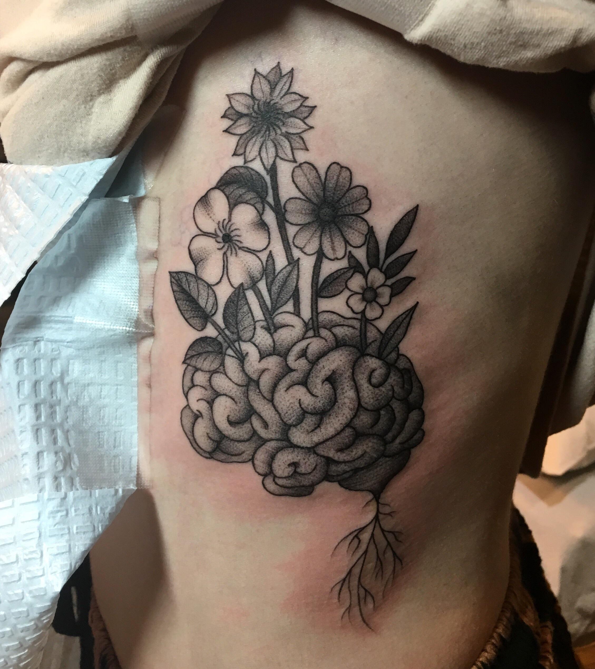 Brainy flowers tattoo done by Ashley Wollaston at Speakeasy in Chicago