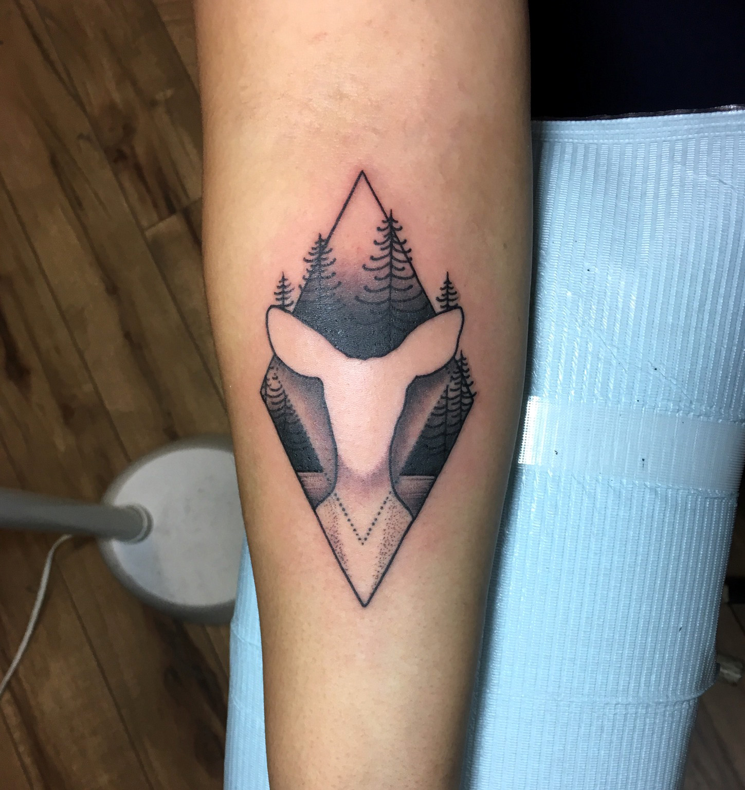 The Silver Doe tattoo by Martin Buechler at Red Lotus Tattoo Co. Lansdale, PA
