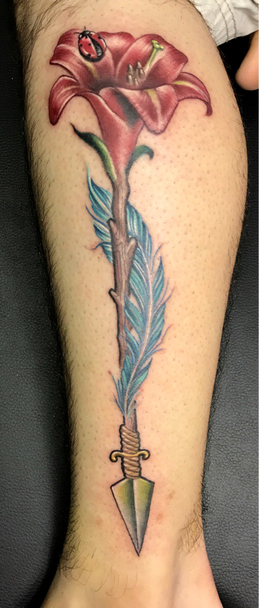 Lily Arrow tattoo by Javi Luna at Heart of Gold in McAllen, Tx
