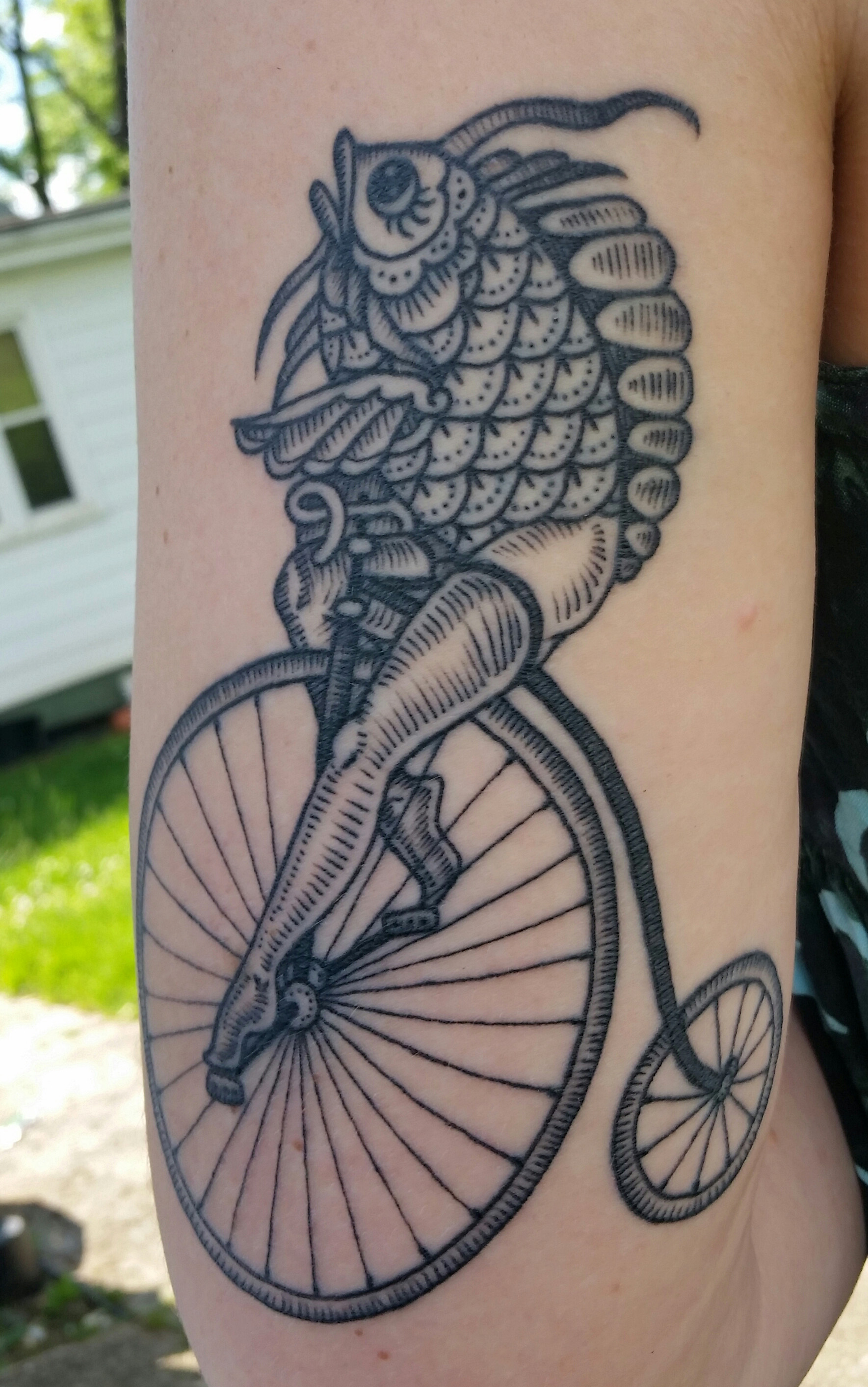 Fish a bicycle, tattoo. Created by the lovely Jess Versus at Heroes and Ghosts in Richmond, VA