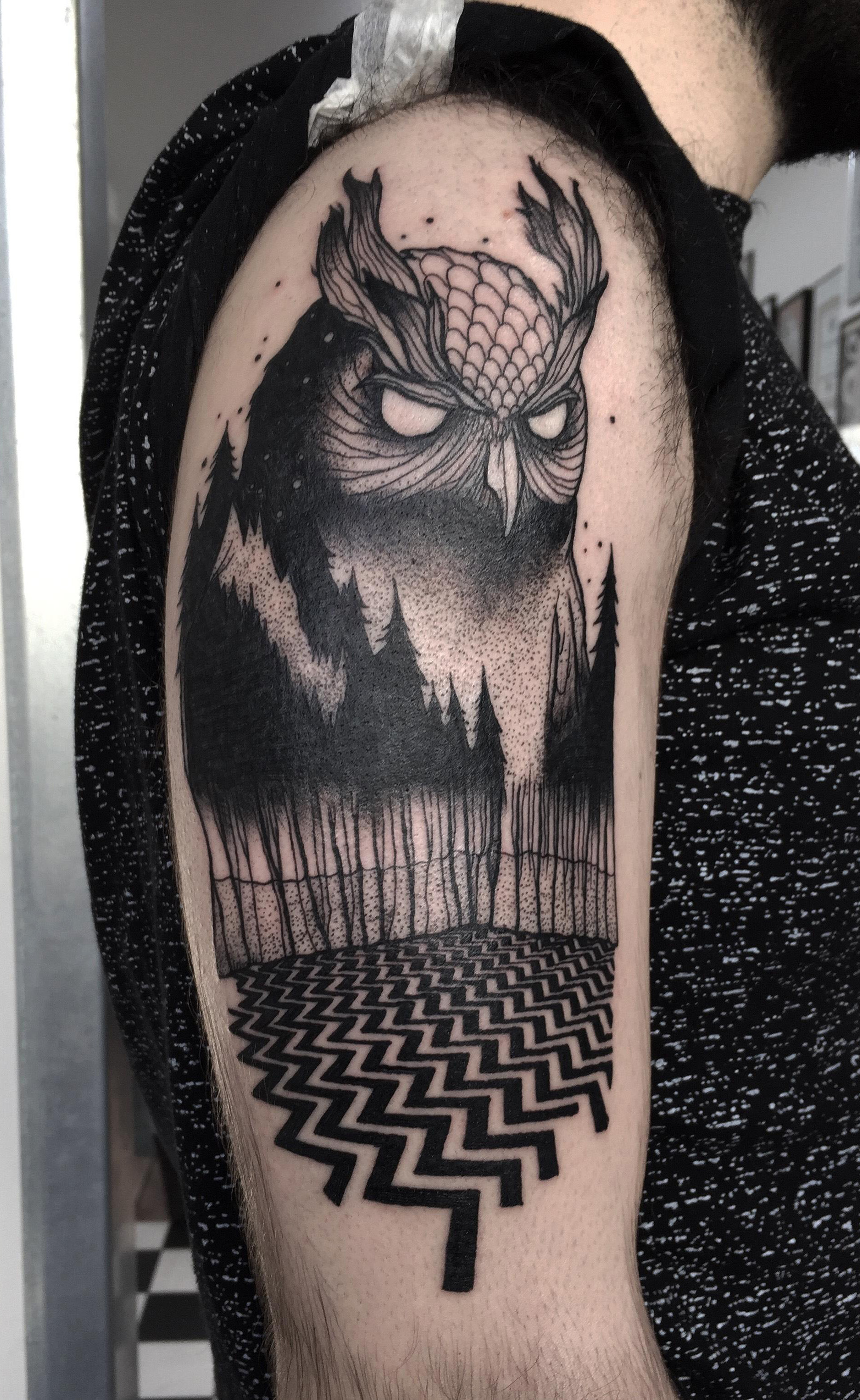 Owl tattoo. By Prakash at Gallon Tattoo, Stockholm, Sweden