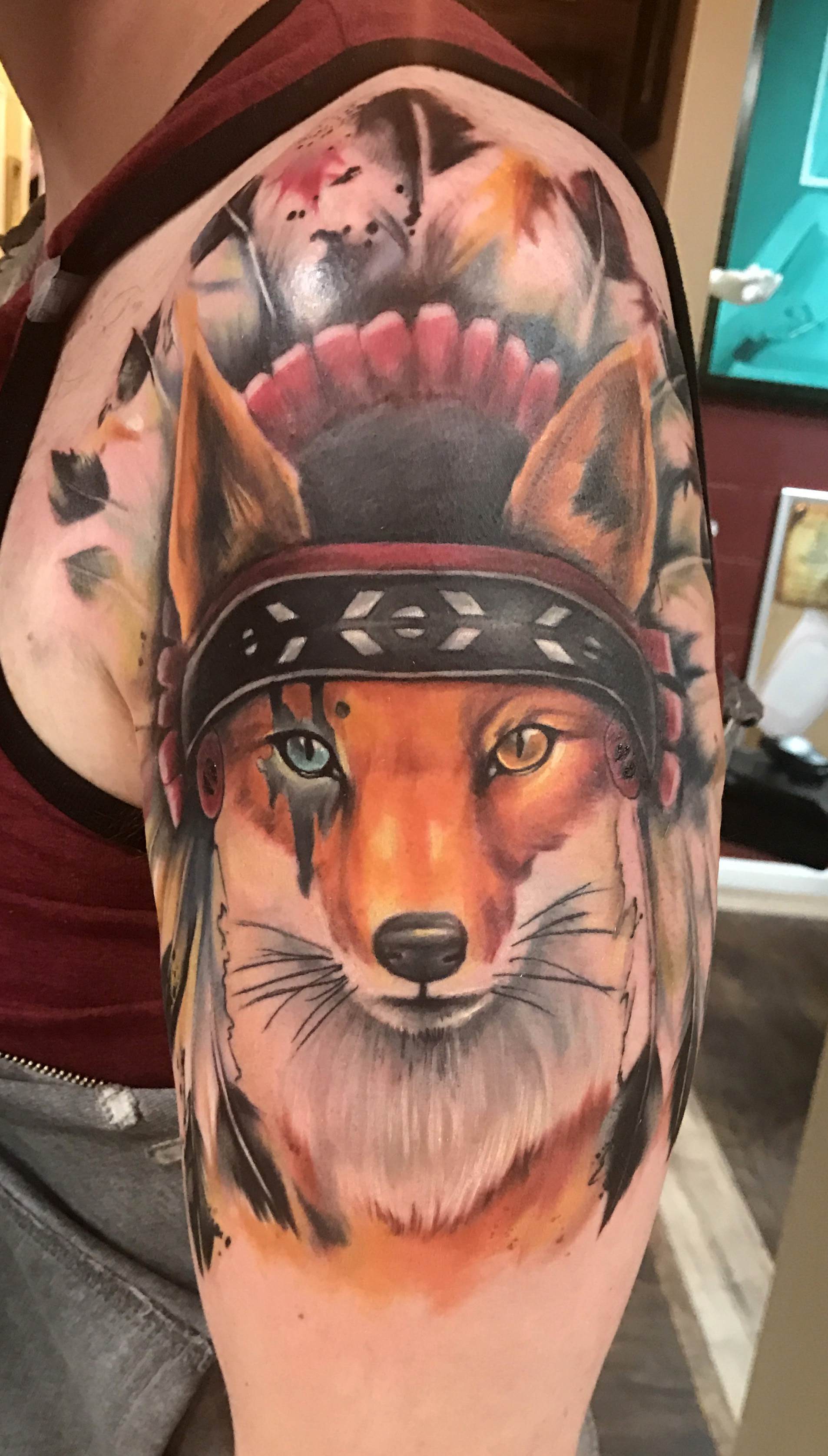 Fox tattoo done by Gabriel Luna at Elite Tattoo Gallery. Jacksonville, NC