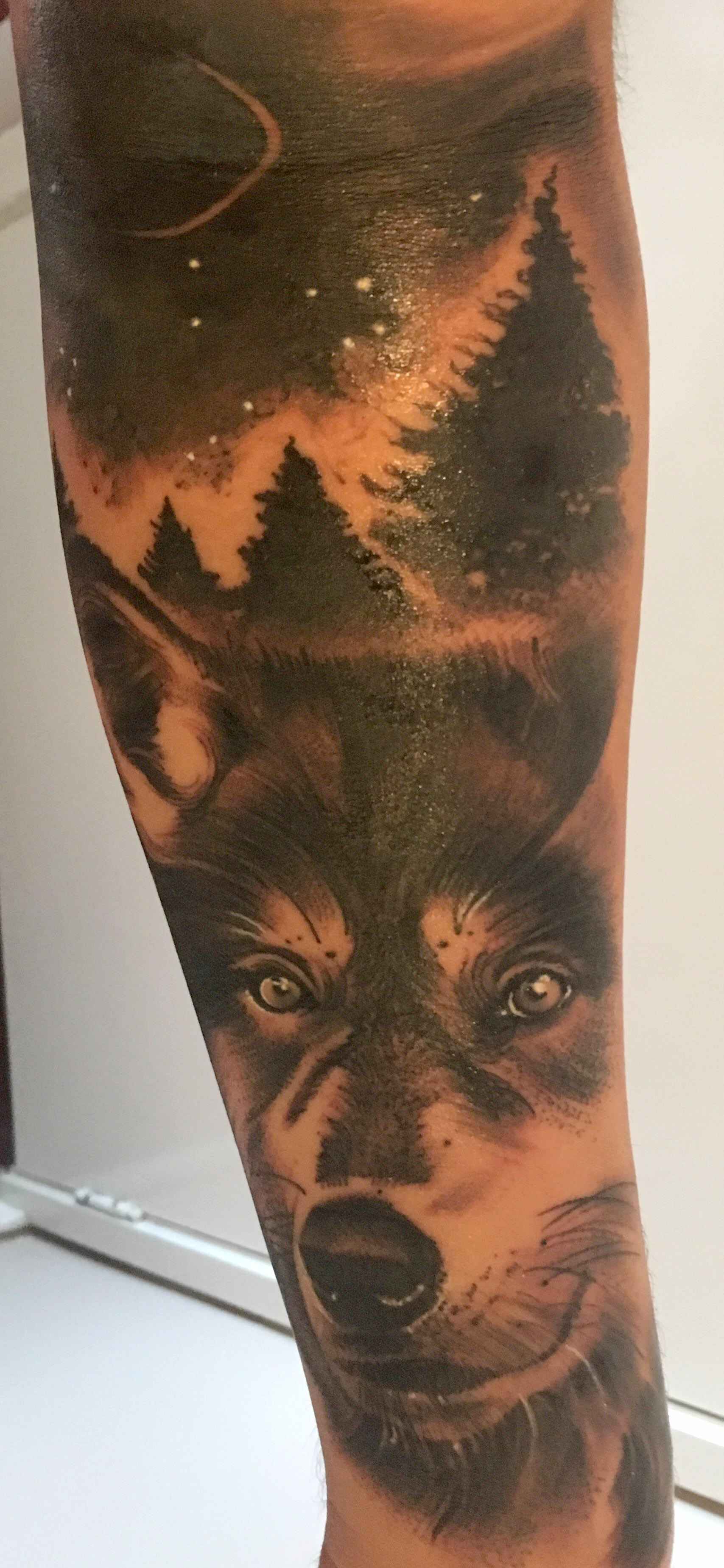 Wolf Town Tattoo. Done by Norbert Bolech, Bratislava, Slovakia
