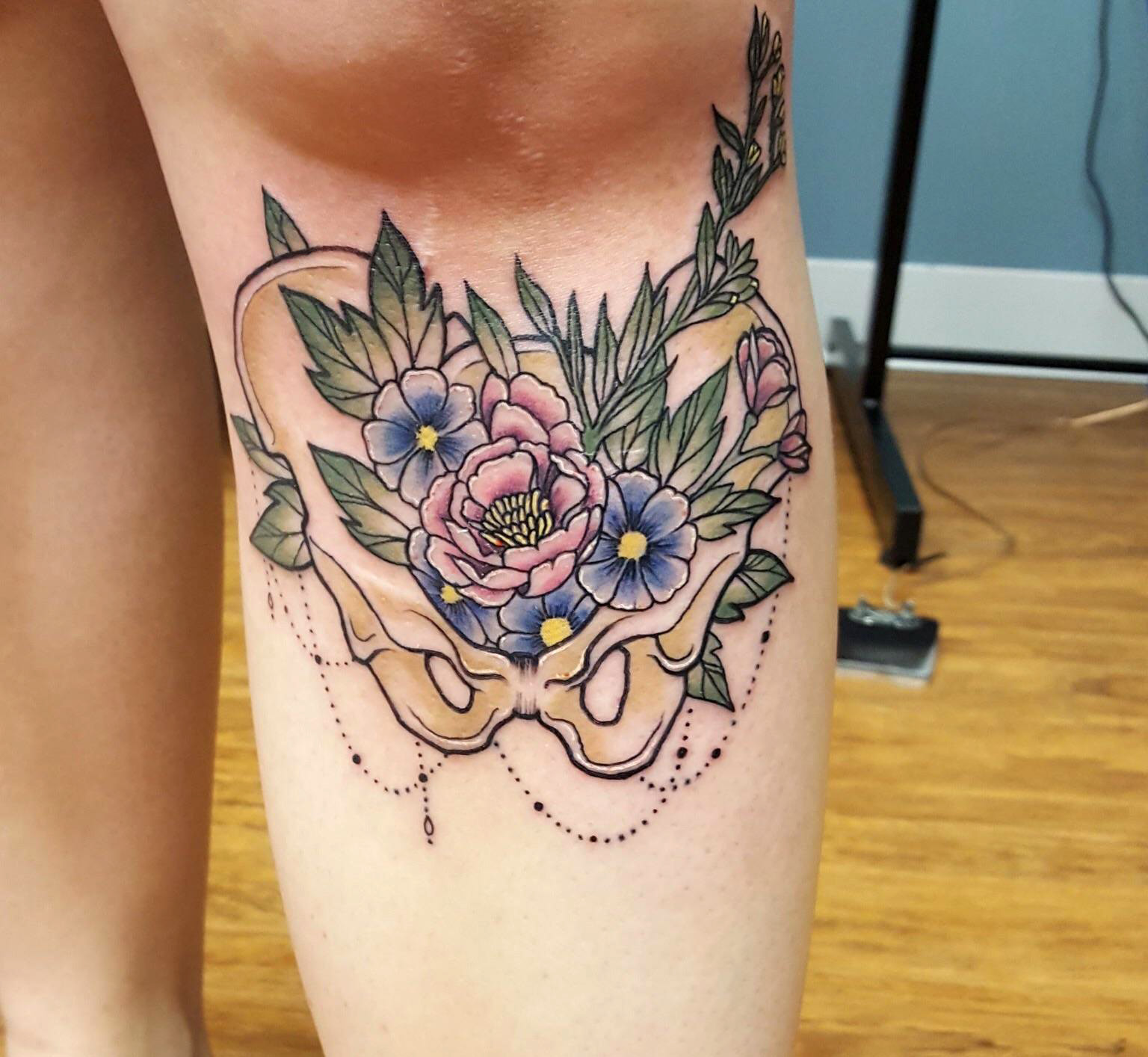 Flowers, an anatomy tattoo, done by Austin at Artisan Tattoo, Wisconsin