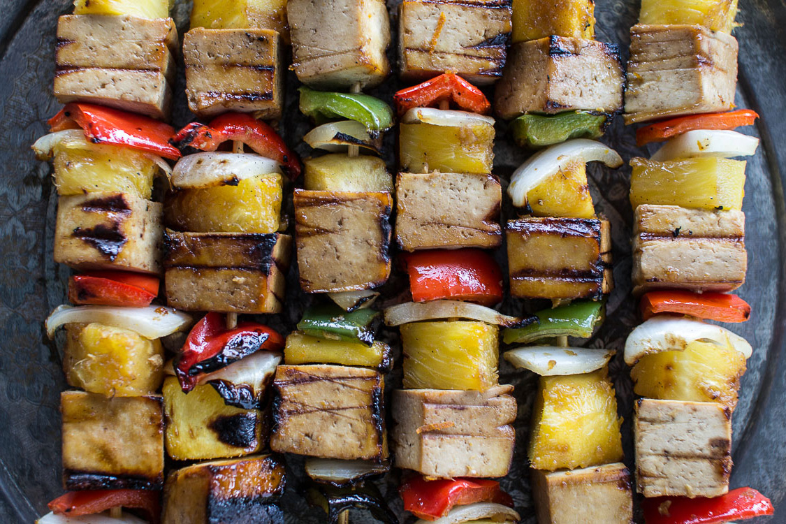 Grilled pineapple and Teriyaki Tofu Skewers for camping food