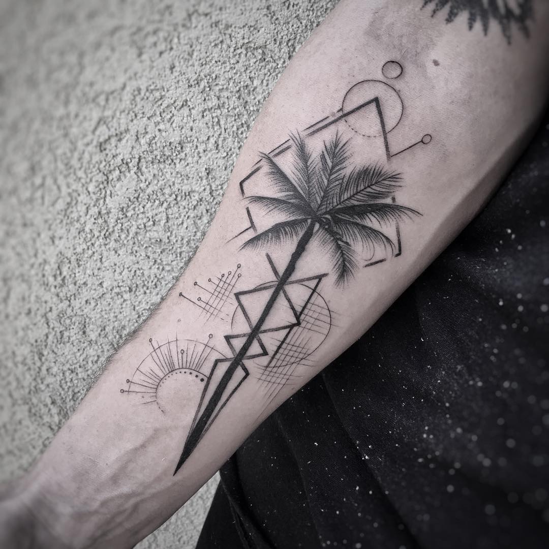 Geometry Palm Tree Tattoo by Balazs Bercsenyi