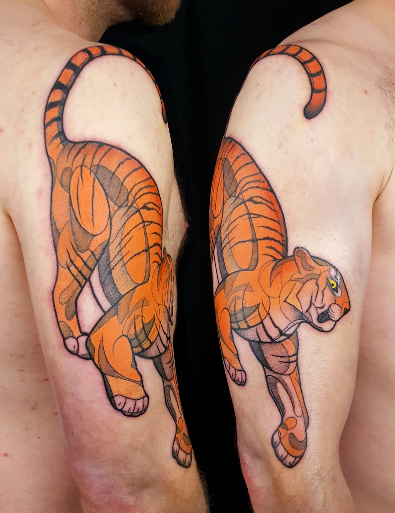 Art Deco Tiger tattoo by Hannah Steele out of Metamorph Studios in Chicago, Illinois