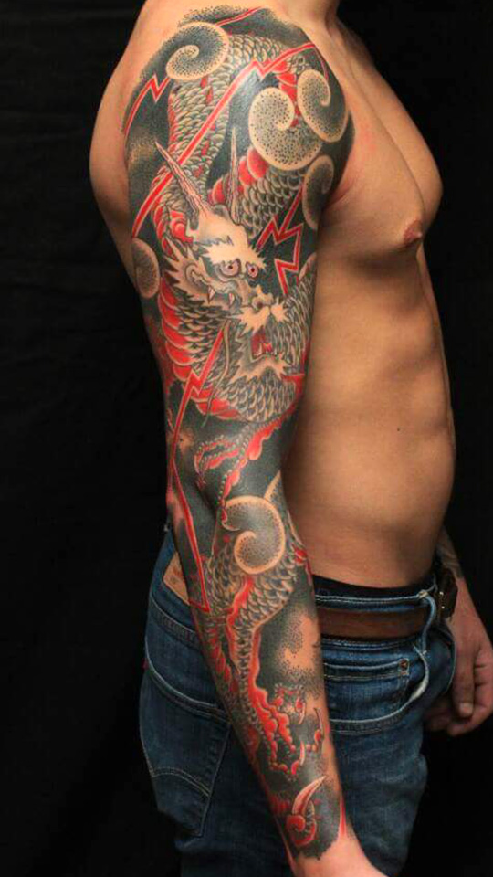 Traditional Japanese dragon,tattoo. Done by Glenn Flesjaa, owner of Iron Shield Tattoo in Sandnes, N