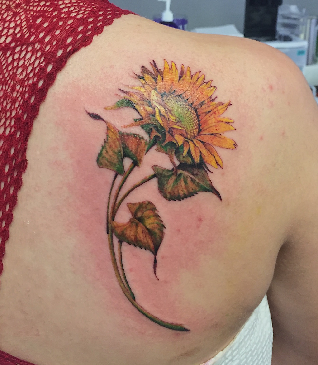 Sunflower tattoo by Amanda @ EvolvInk NJ