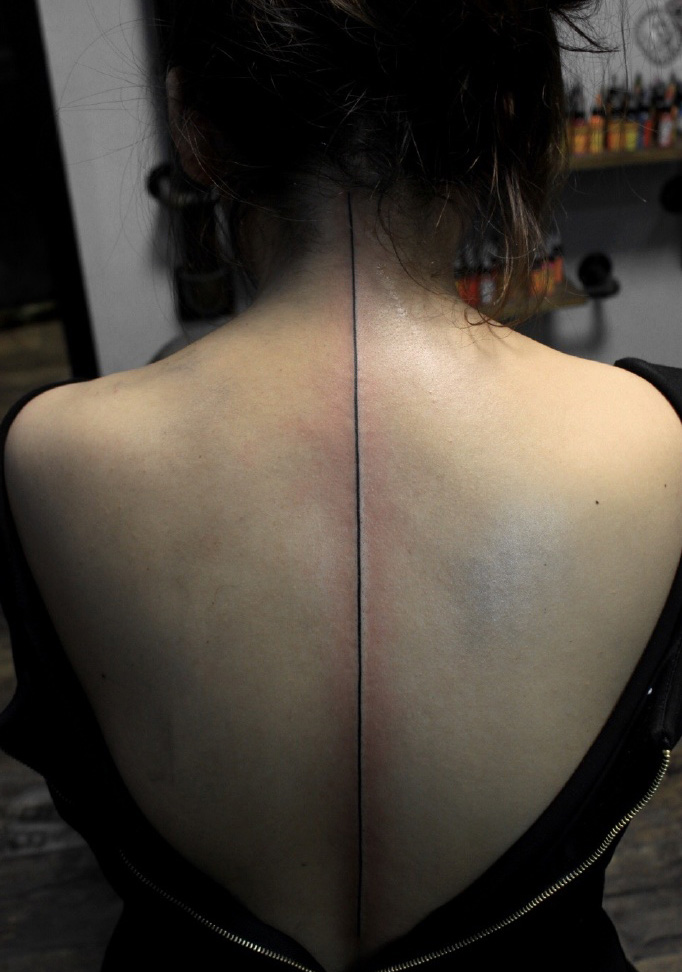 line down spine tattoo