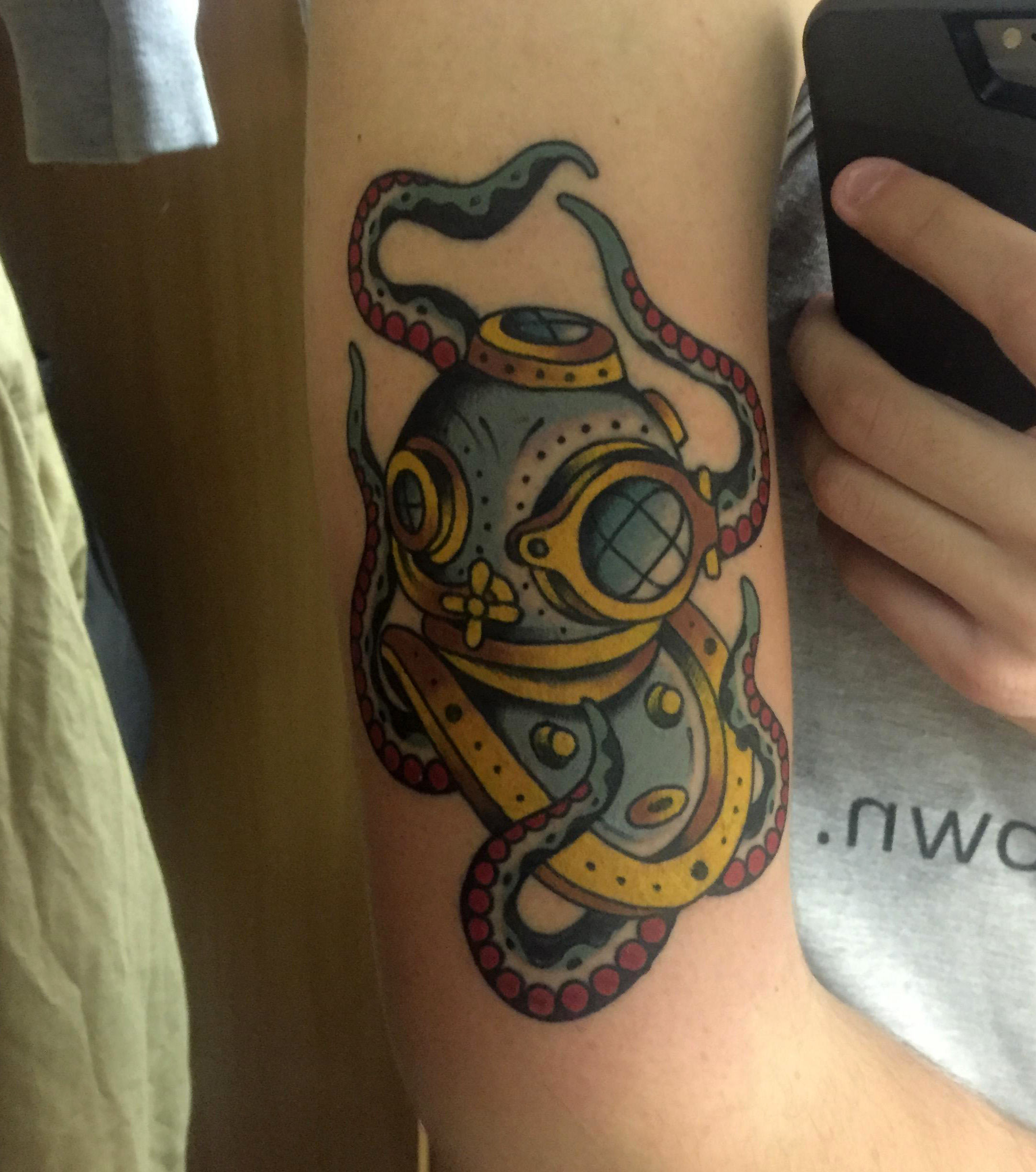 Octopus Diver by Luke Jinks, Cloak and Dagger Tattoo, London UK
