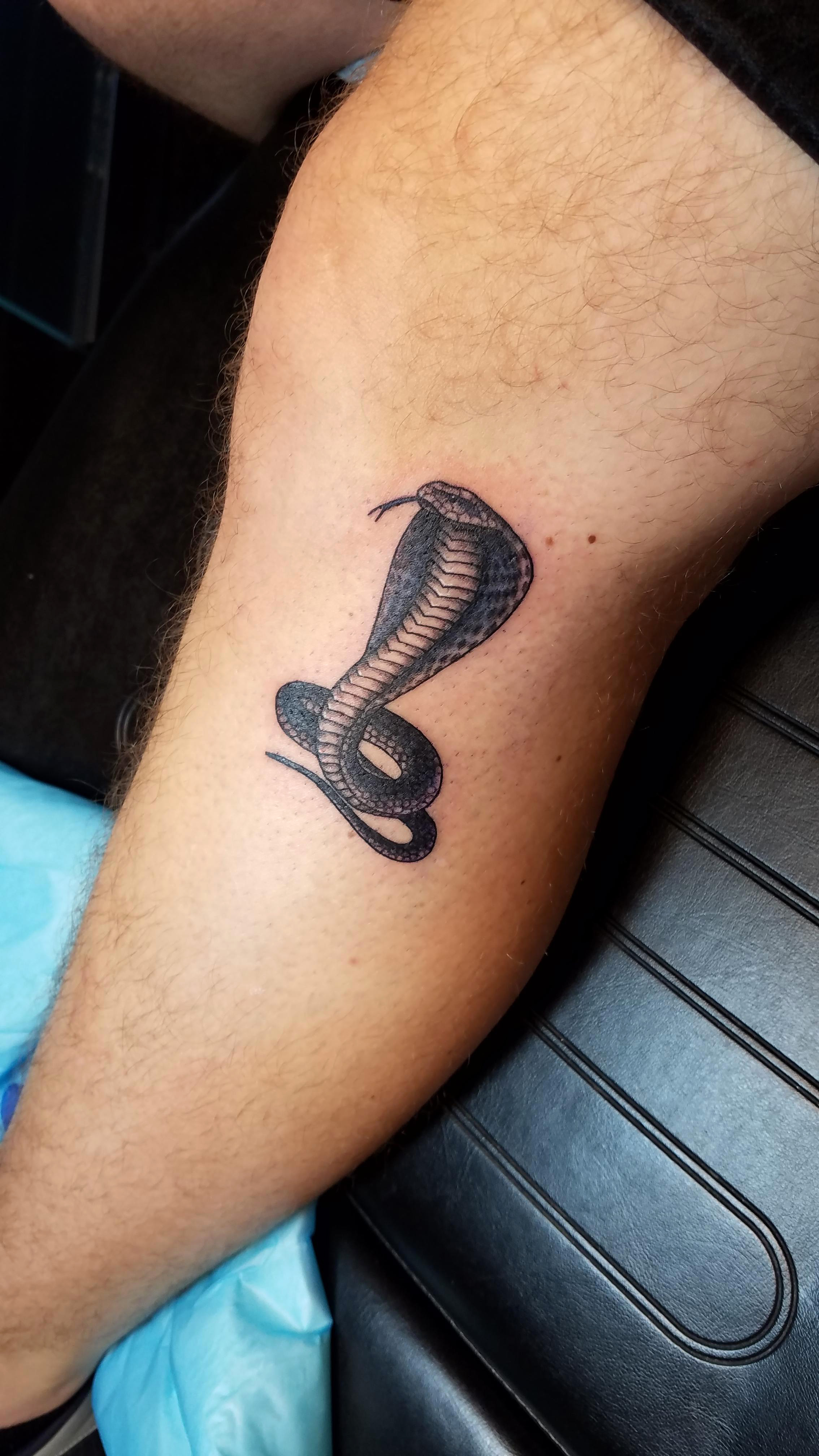 Cobra tattoo done by Meredith Bertschin, at Tattooed Heart Studios in Hanover MD