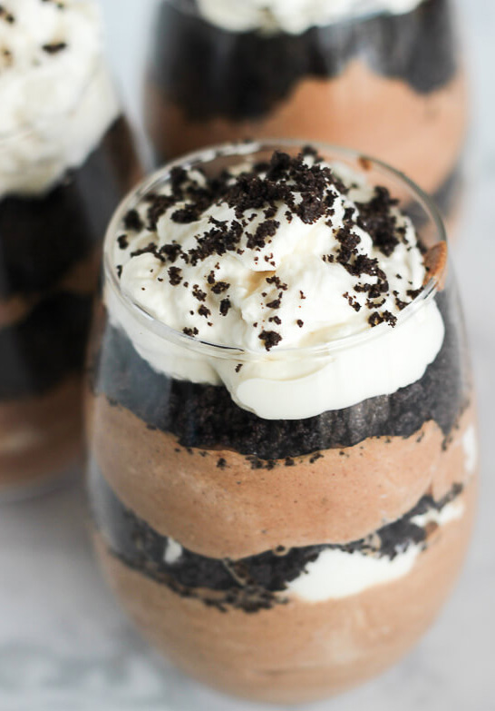 Layers on layers of creamy chocolate and Bailey’s spiked whipped cream and crushed Oreo cookies