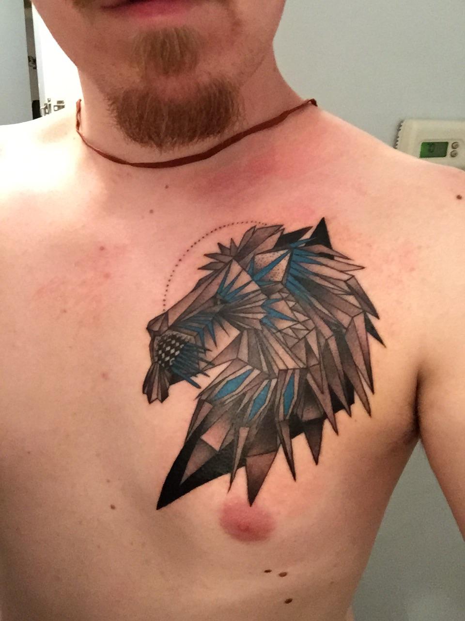 Angular Lion by Hiren Patel, Get Up Tattoo Society, Cincinnati, Ohio