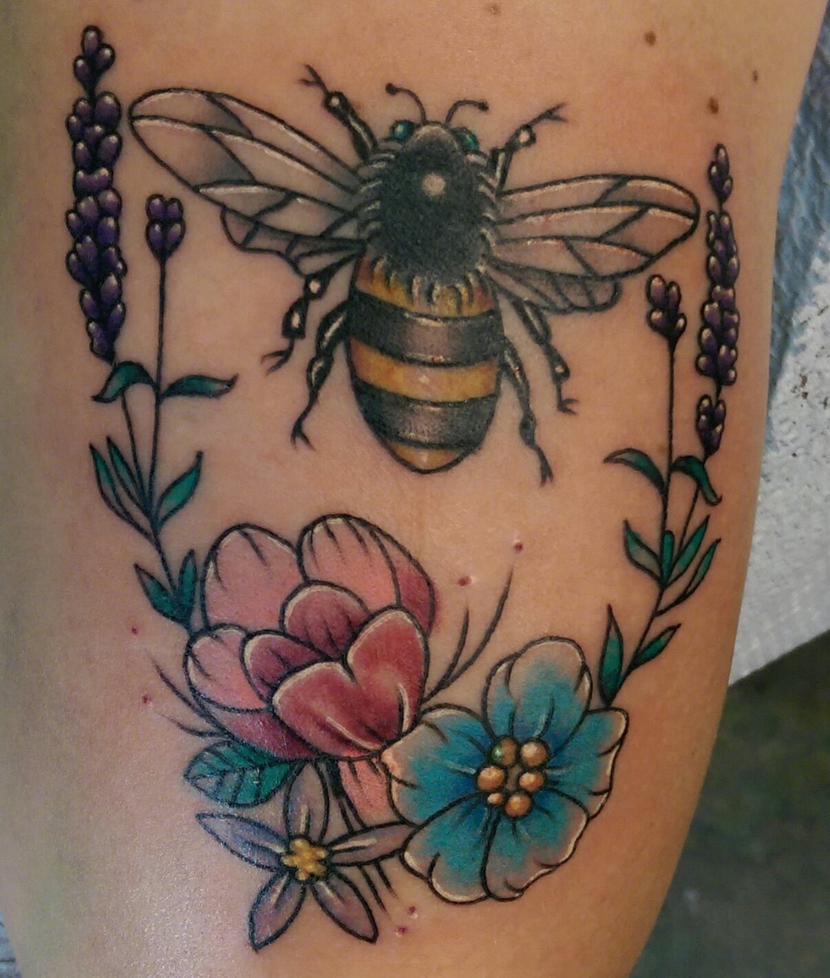 Bee and flowers. Sarah Bambi Mendez at Black door studio in Lubbock, TX