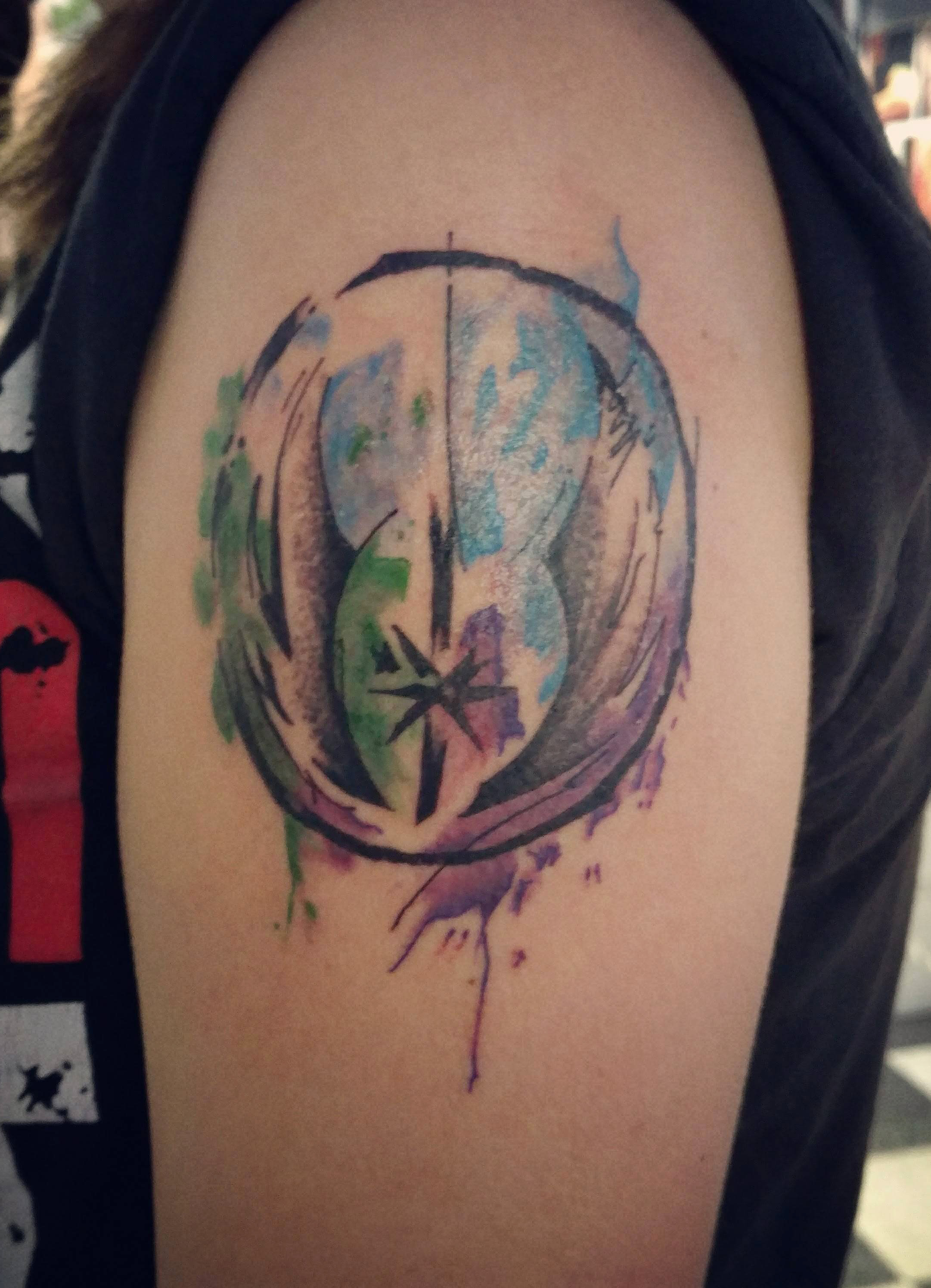 Jedi Order watercolor by Chris Dibiase at Pink Raven Tattoos, Saratoga Springs NY