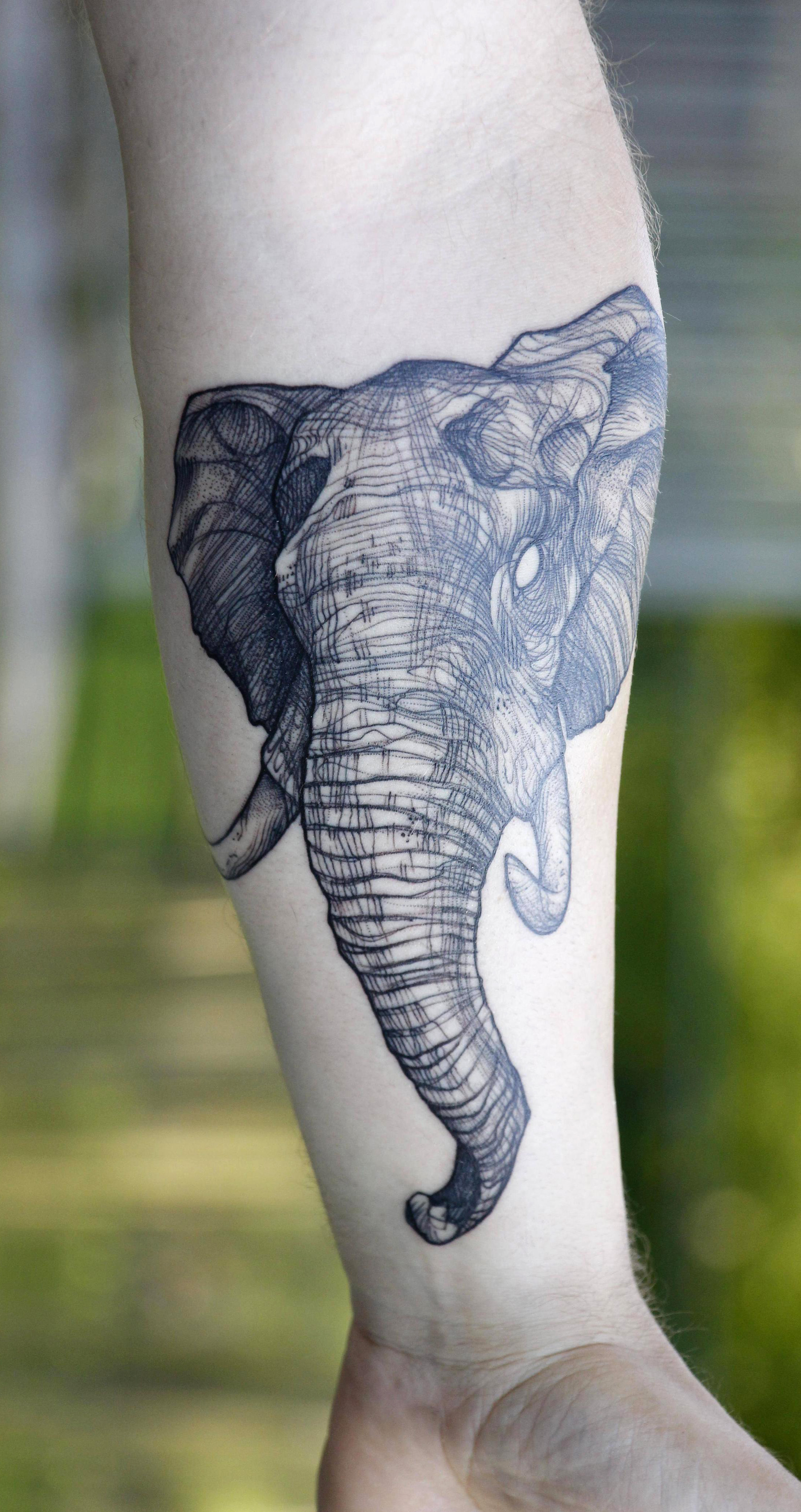 Elephant head by Jen Zie @ One Way Ticket tattoo, Bruges
